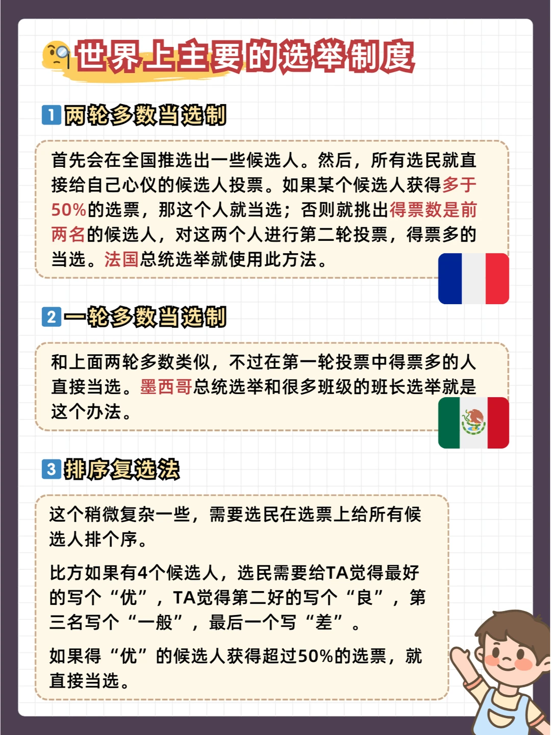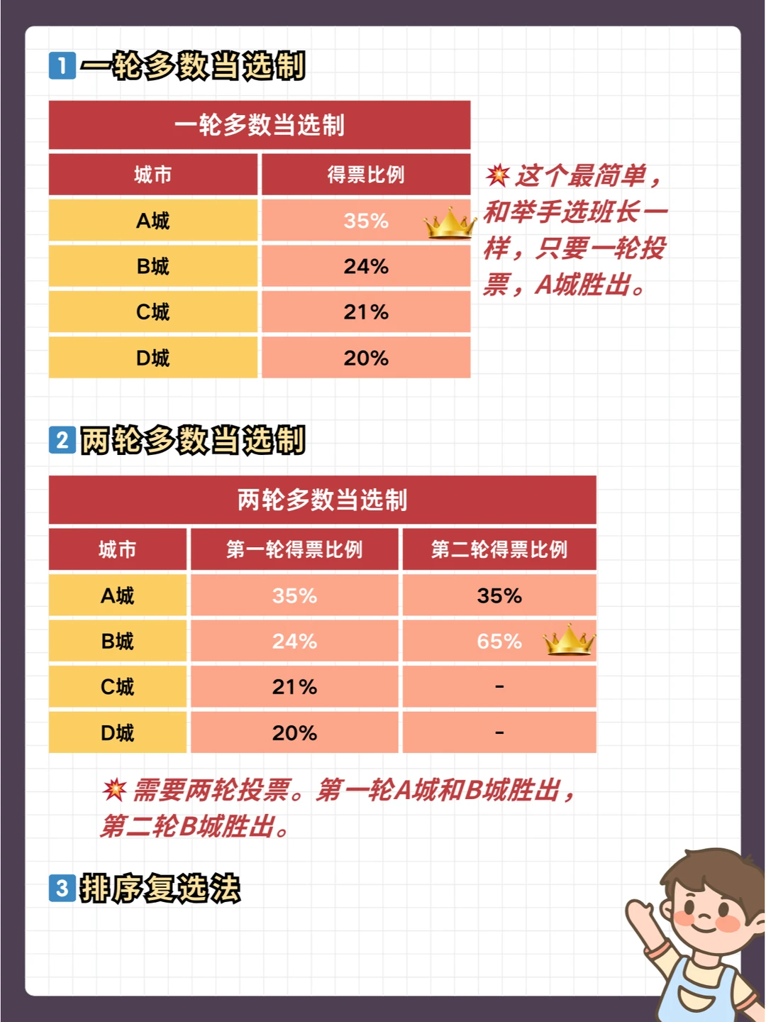 寓教于乐,家长们在吃瓜之余,不要错过这次给孩子启蒙的机会,看美国大选,学数学知识,另外补充其他选举制度涨知识: