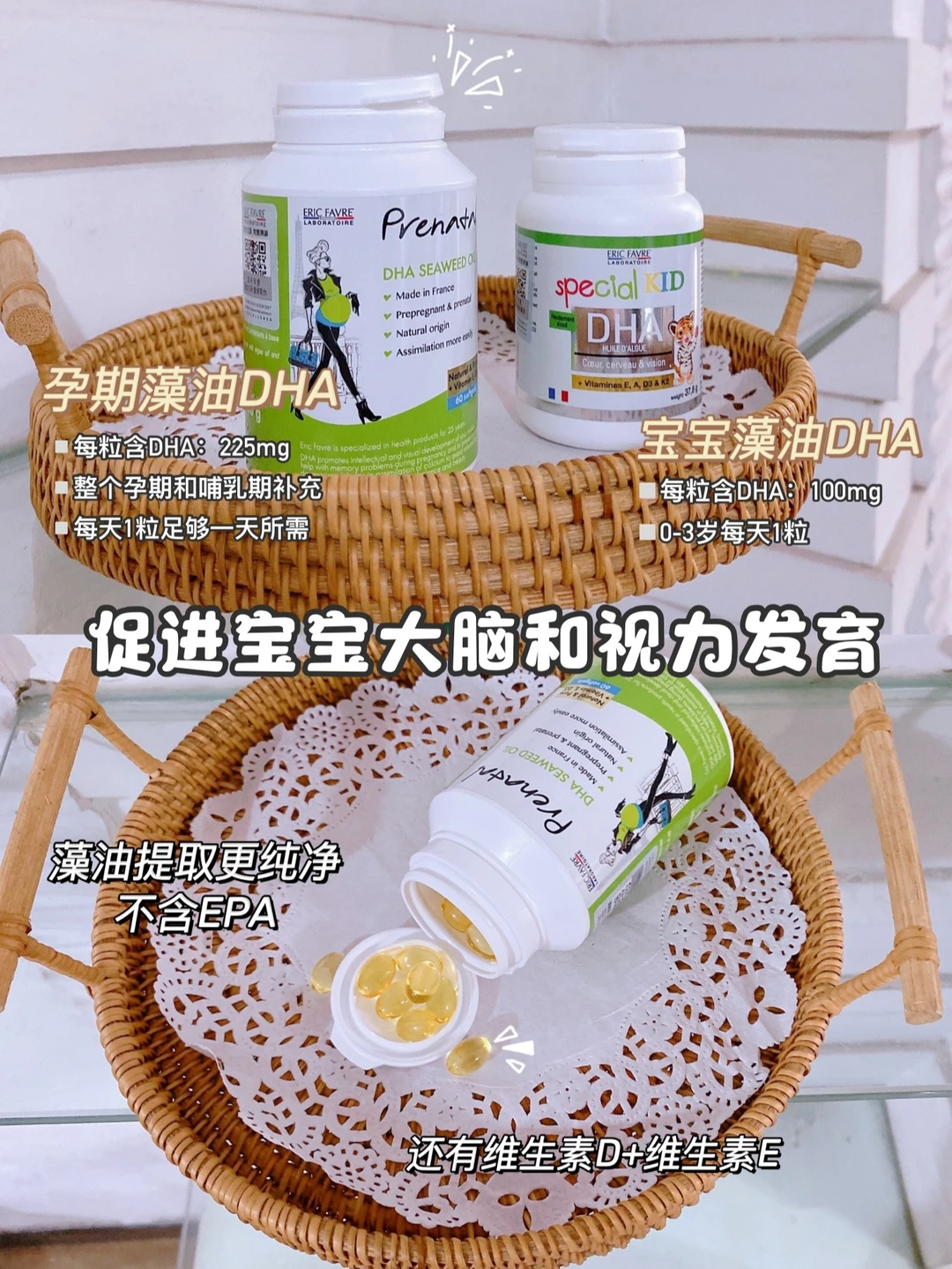 💁♀️我孕期吃的是艾瑞可孕妇DHA,因为是过敏体质,平时吃鱼虾类比较少,所以直接吃DHA补剂来补充了,艾瑞可孕妇DHA是天然藻油提取的,不含EPA[赞R],很纯净~每天1粒就能满足一天所需[派对R]!里面还添加了维生素D3和维生素E,帮助胎儿大脑发育的同时还促进了钙吸收,关键没有鱼油那么腥,而且哺乳期也可以放心吃,DHA会通过母乳传递给宝宝![萌萌哒R]我觉得性价比蛮高的~[喝奶茶R]