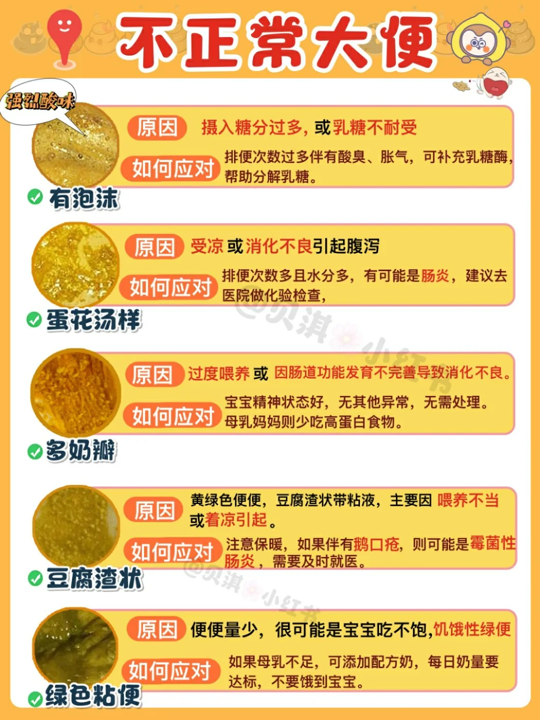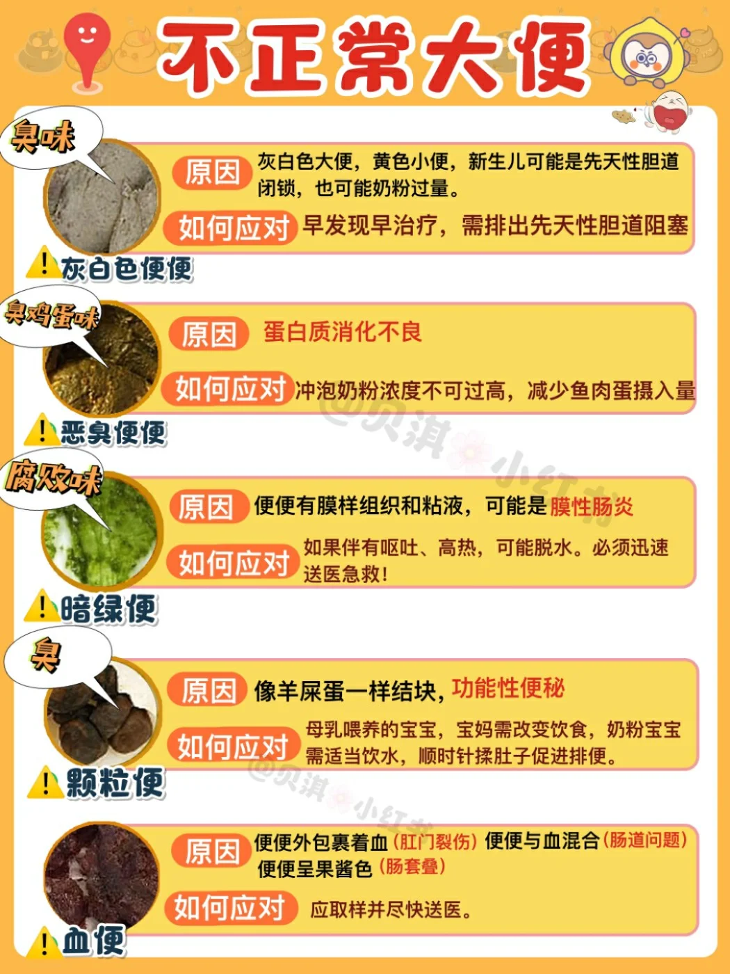 宝宝的各种大便问题都列在图上了,[萌萌哒R]记得保存好,分享给老公看看吧!