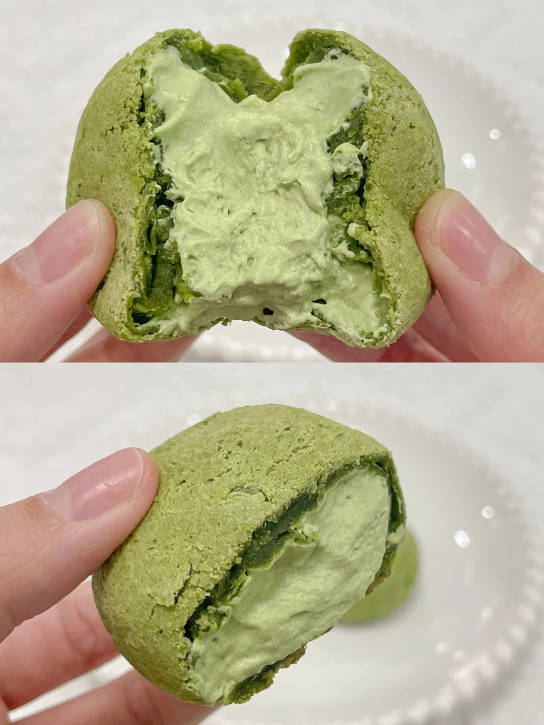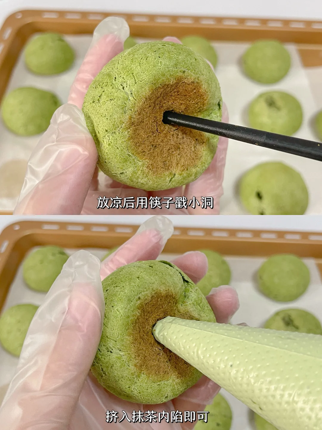 好吃到爆❗️这个抹茶爆浆麻薯球真的巨巨巨好吃!!😋 软糯Q弹的麻薯包➕浓郁香甜的抹茶内馅,这组合简直绝了!![赞R] 一口爆浆,糯叽叽的,双重口感,真的 被惊艳住了!![色色R] 冷冻后冰激凌🍨口感,还有馅料超足,真的超满足~[吐舌头H] 做法超简单,喜欢的姐妹一定要去试试呀~💕 🌈食材: 麻薯包: 麻薯预拌粉200g 抹茶粉6g 食盐2g 温水70g 鸡蛋液70g 黄油40g 抹茶内馅: 淡奶油200g 白糖15g 抹茶粉5g 🌈做法: 1⃣️麻薯预拌粉+抹茶粉搅拌均匀,加食盐+温水+鸡蛋液搅拌至无干粉,加入黄油不停揉匀至表面光滑即可。 2⃣️将面团分成25g大小的小团子,放入烤盘,表面喷水,烤箱提前预热,烤箱170度30分钟。 3⃣️淡奶油+白糖+抹茶粉打发至有明显纹路,装入裱花袋中,麻薯放凉后用筷子戳一小洞,挤入抹茶内馅即可开吃。