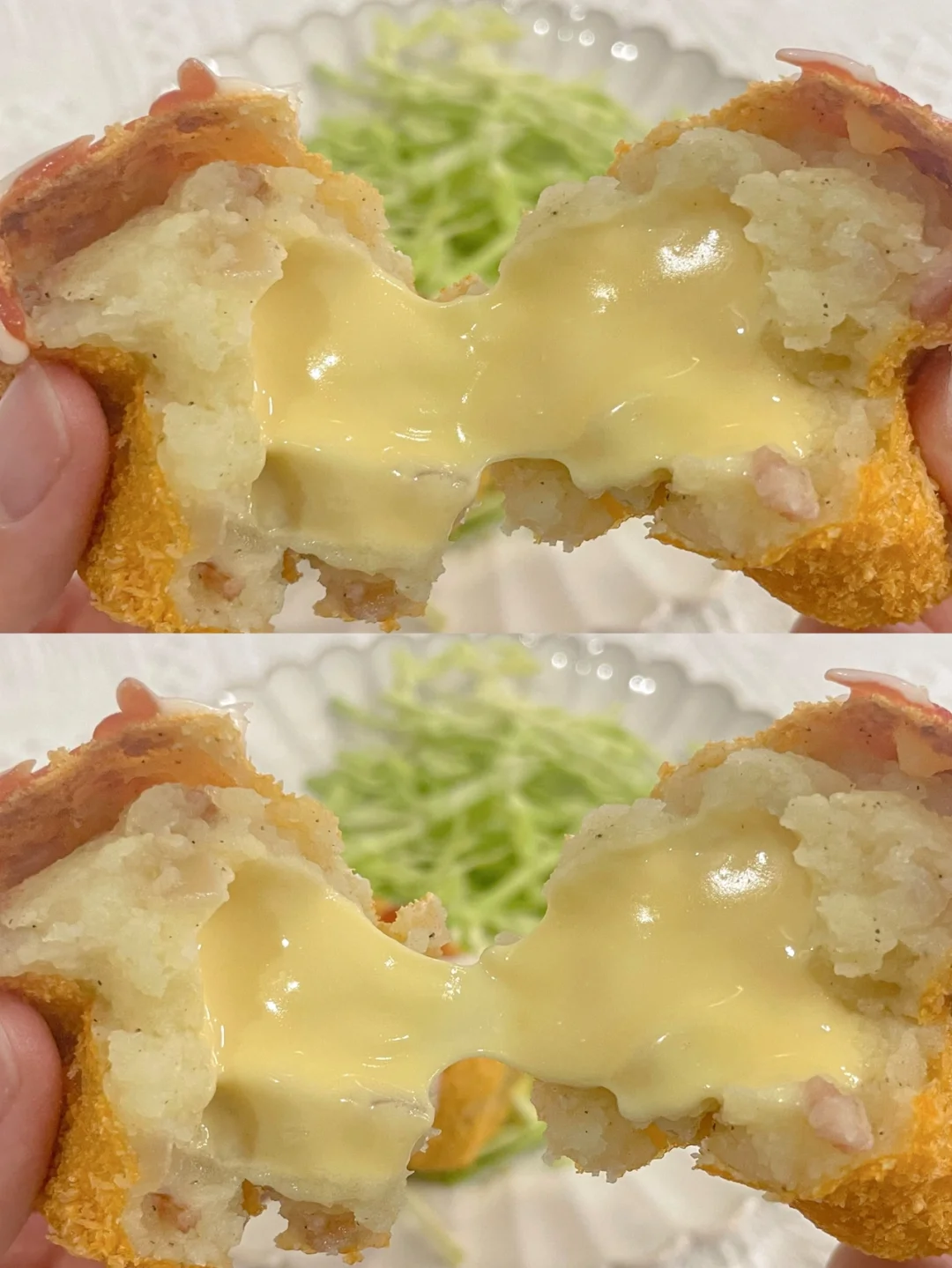 金黄酥脆的外皮裹着口感细腻软糯的土豆泥[偷笑R]