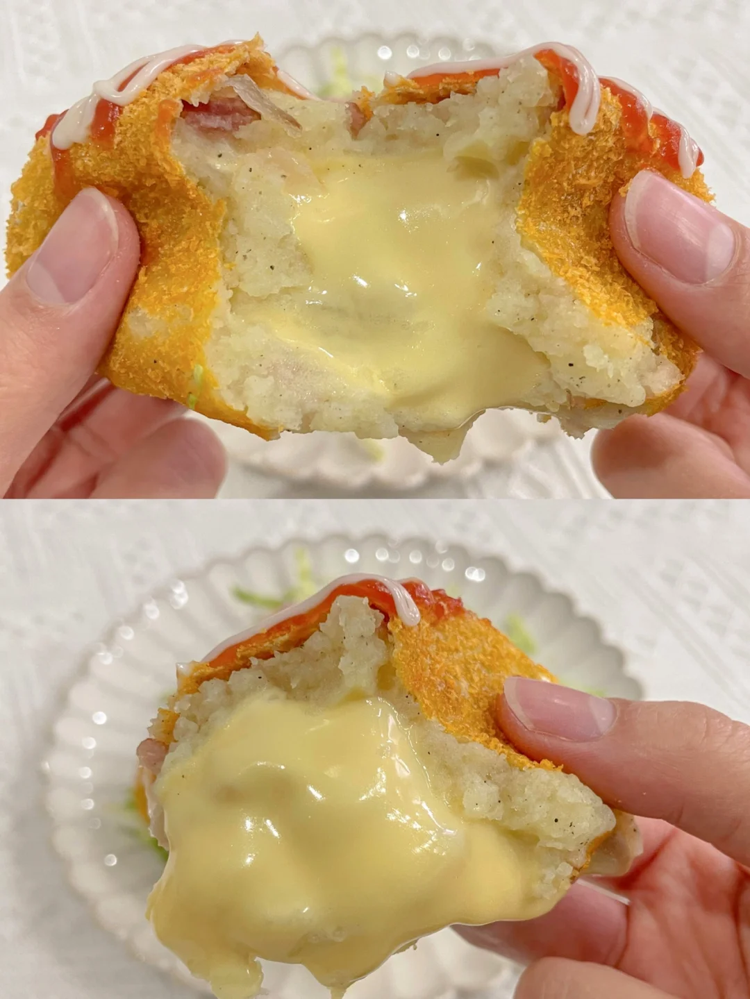 还有芝士🧀️夹心拉丝爆浆,一口爱上,好吃绝了![赞R]