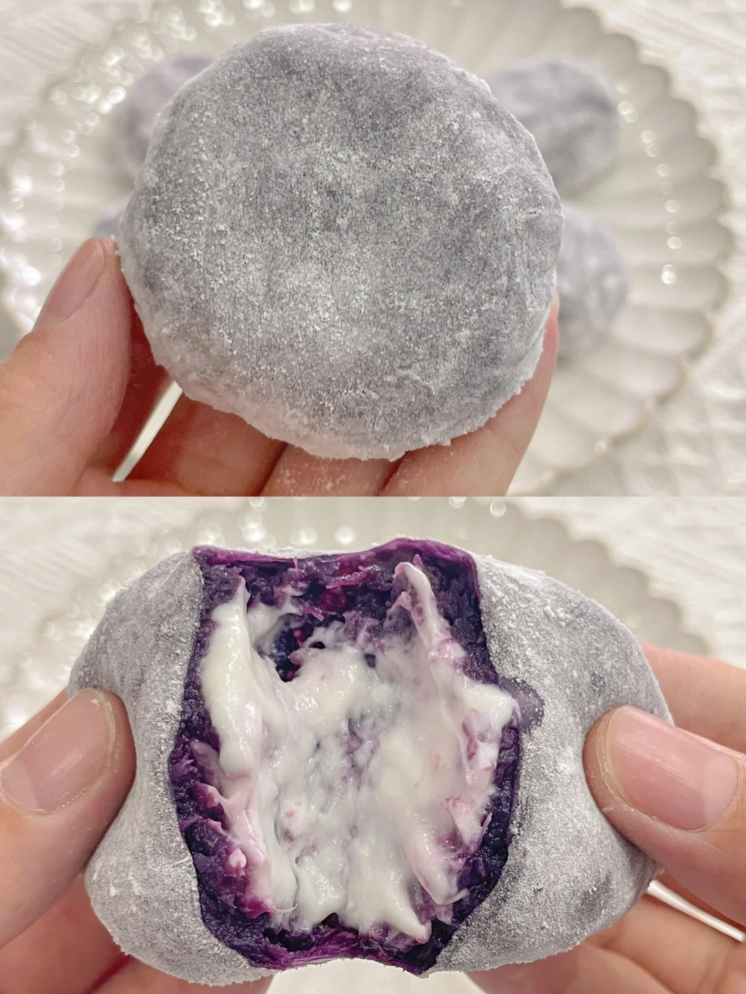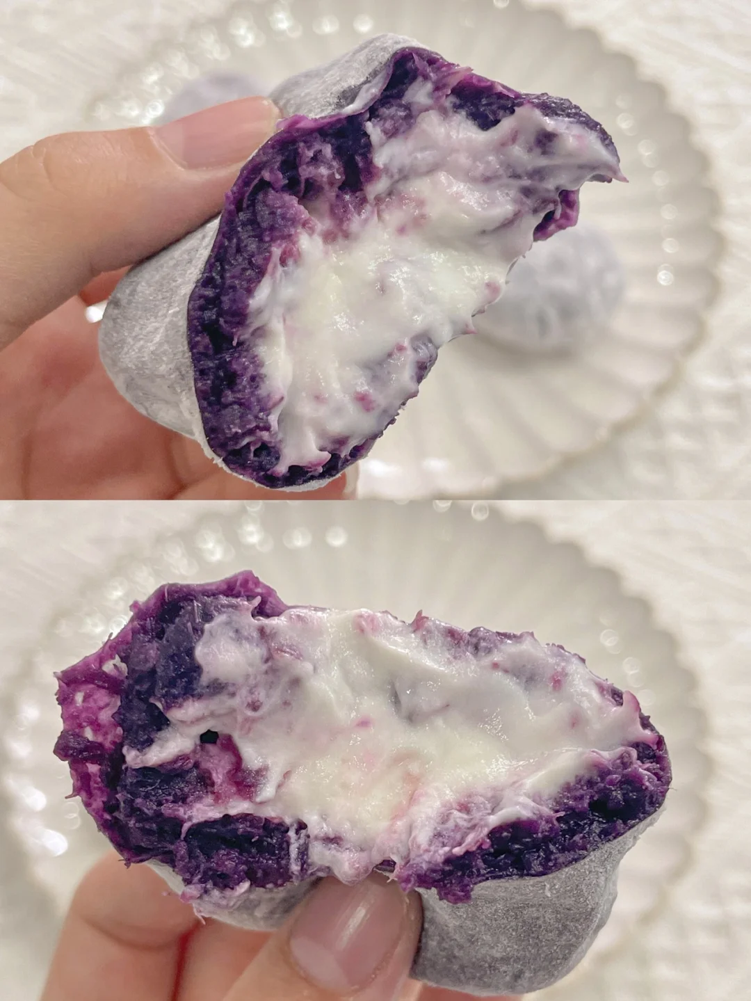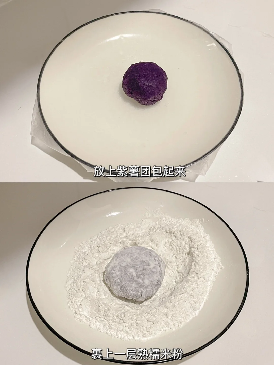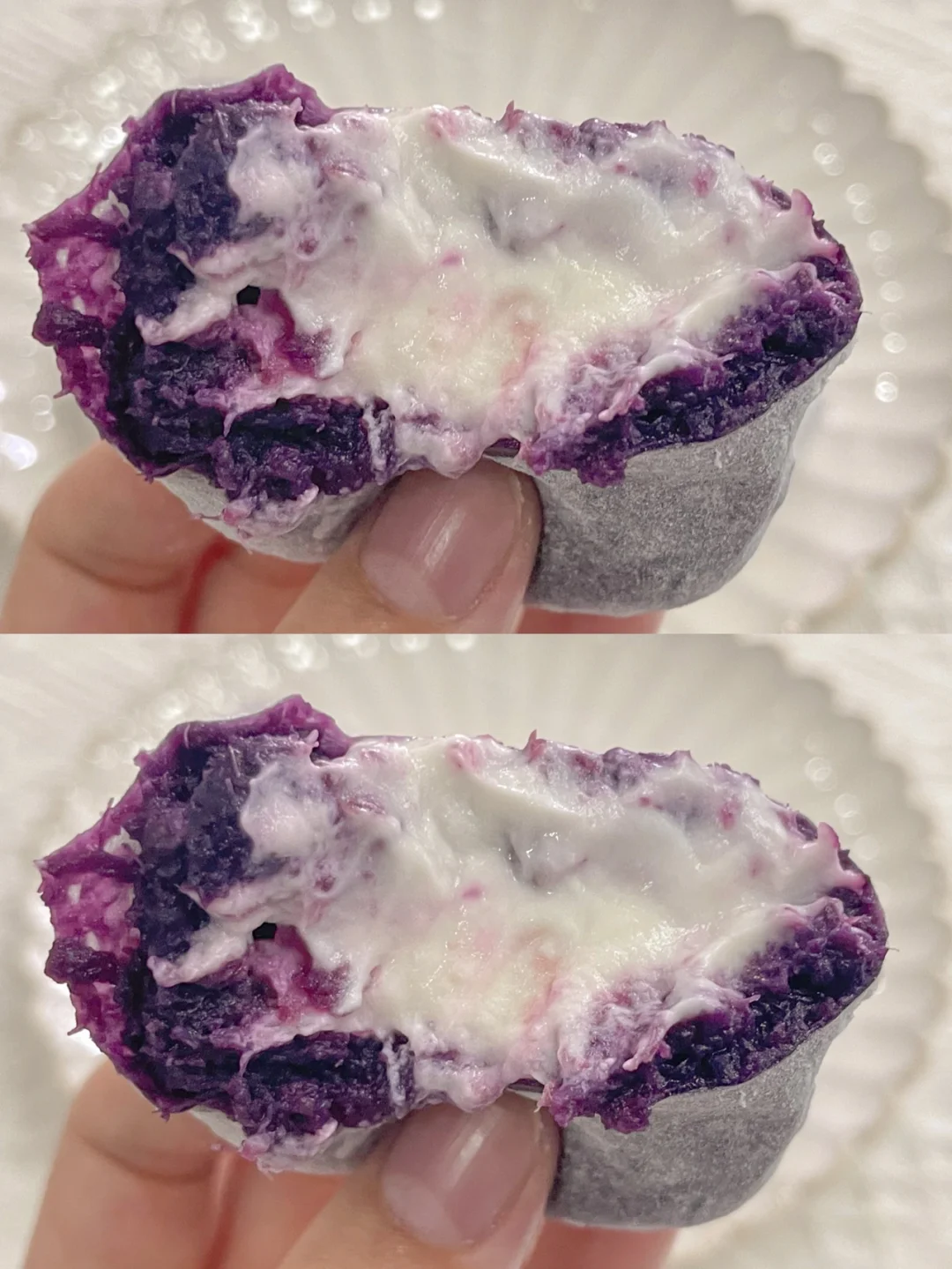好吃不怕胖[派对R] 这个用春卷皮做的低配版雪媚娘真的好好吃!😋 糯叽叽的外皮裹着香甜软糯的紫薯泥和酸奶,一口下去,满满的酸奶爆浆,真的敲满足~[色色R] 低脂低卡,一口气吃了好几个[暗中观察R],饱腹感强,减脂的姐妹一定要试试![吐舌头H] 无需揉面,春卷皮就能轻松搞定,喜欢的赶紧去试试呀~💕 食材: 紫薯 炼乳 酸奶 越南春卷皮 熟糯米粉 做法: 1⃣️紫薯洗净去皮切块上锅蒸熟加炼乳,压成泥,取适量紫薯泥揉圆压扁,包入酸奶。 2⃣️春卷皮泡水后放在放在碗上,放入紫薯团包起来,裹上一层熟糯米粉即可。