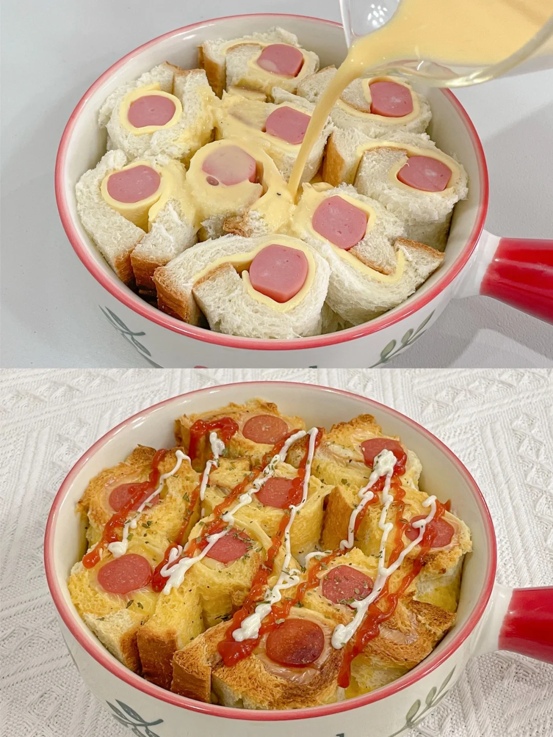 好吃到尖叫❗️这个芝士香肠布丁吐司🍞真的太好吃啦!![色色R]