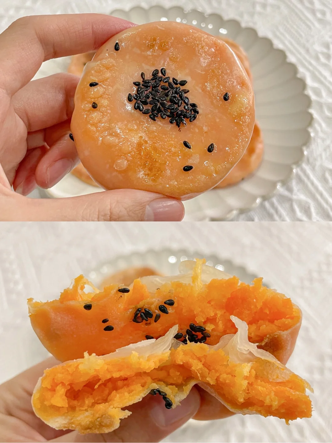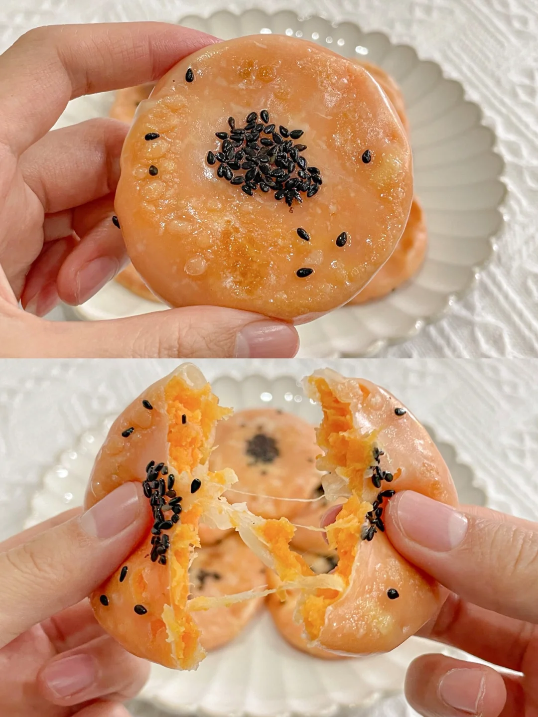 Q弹软糯的外皮裹着香甜浓郁的红薯和拉丝的芝士,外皮还有芝麻香,口感层次升级了这么多,吃一口就爱上~[色色R][色色R]