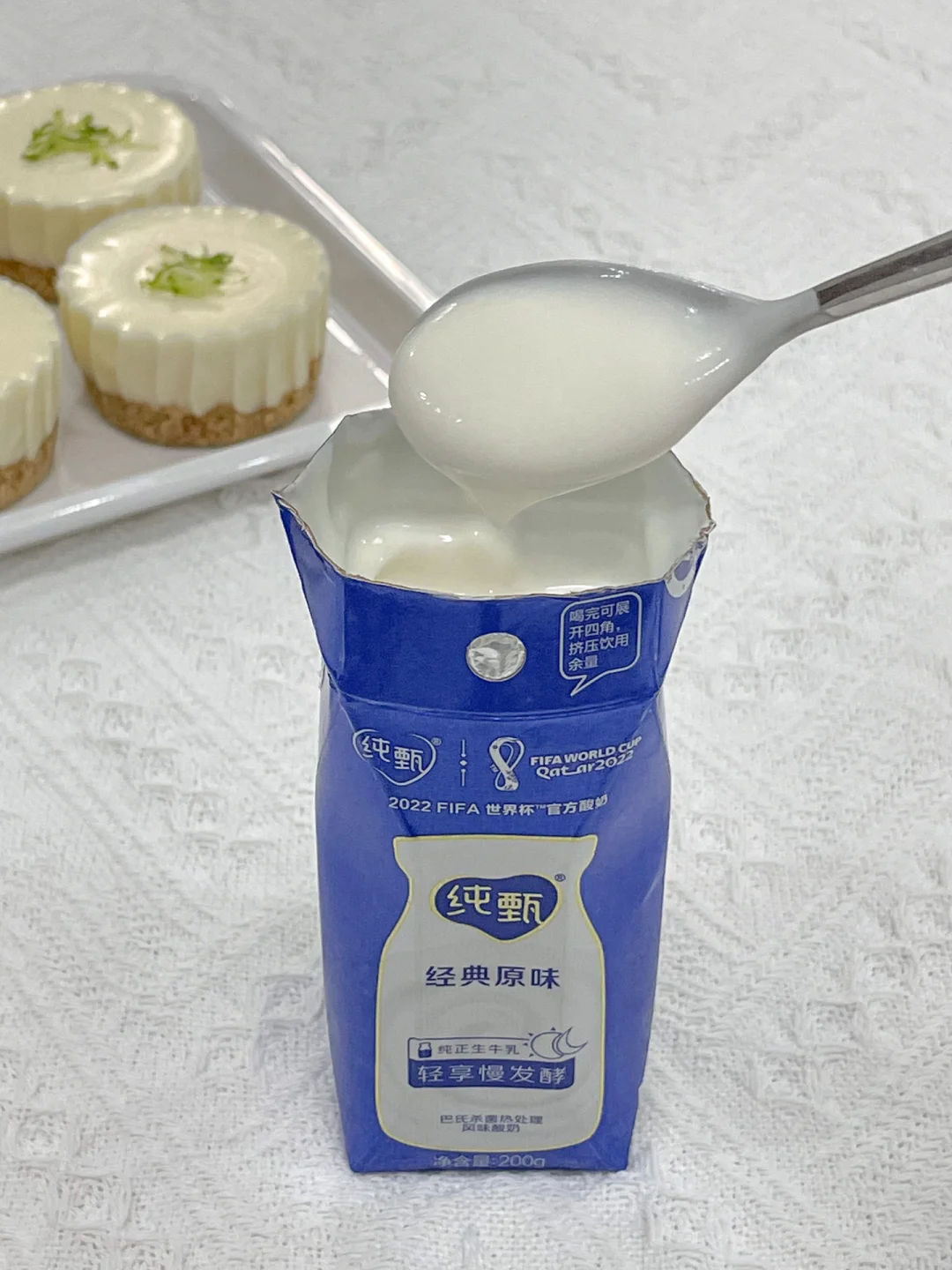 🙋♀️这款青柠芝士蛋糕好吃的关键在于是我使用了纯甄原味酸奶做搭配,甜儿不腻😋~配料首位就是生牛乳,奶味更纯,口感浓郁顺滑,真的超爱喝🥰。主要是这款酸奶还是0添加香精、色素、明胶,营养健康轻负担,大人小孩都能放心喝👍~还有小盒包装hin方便随身携带,无需冷藏,可以常温保存哦!平时还可以用来做酸奶碗🥣或者DIY其他美食都很可,也可直接饮用哦👌~