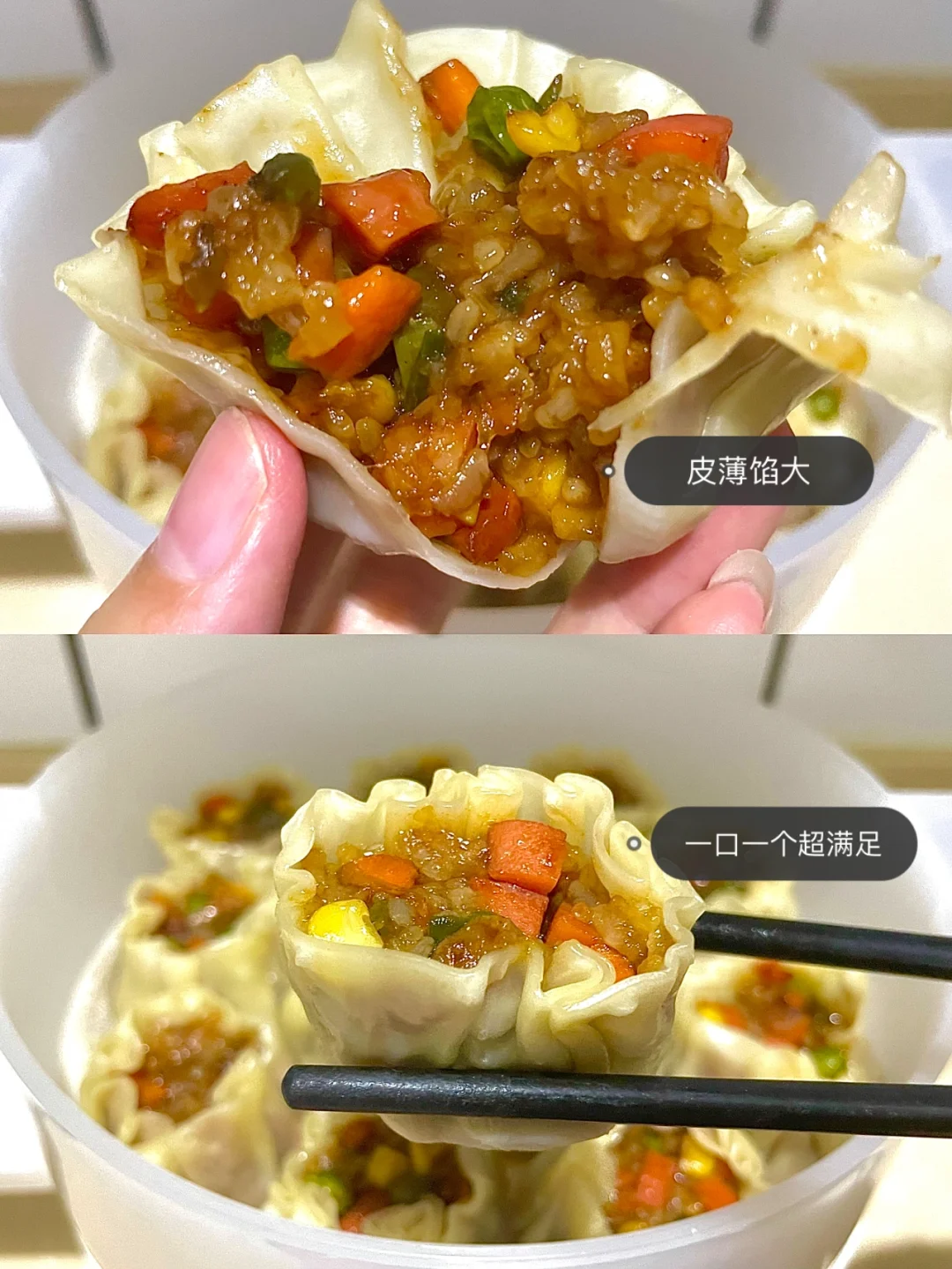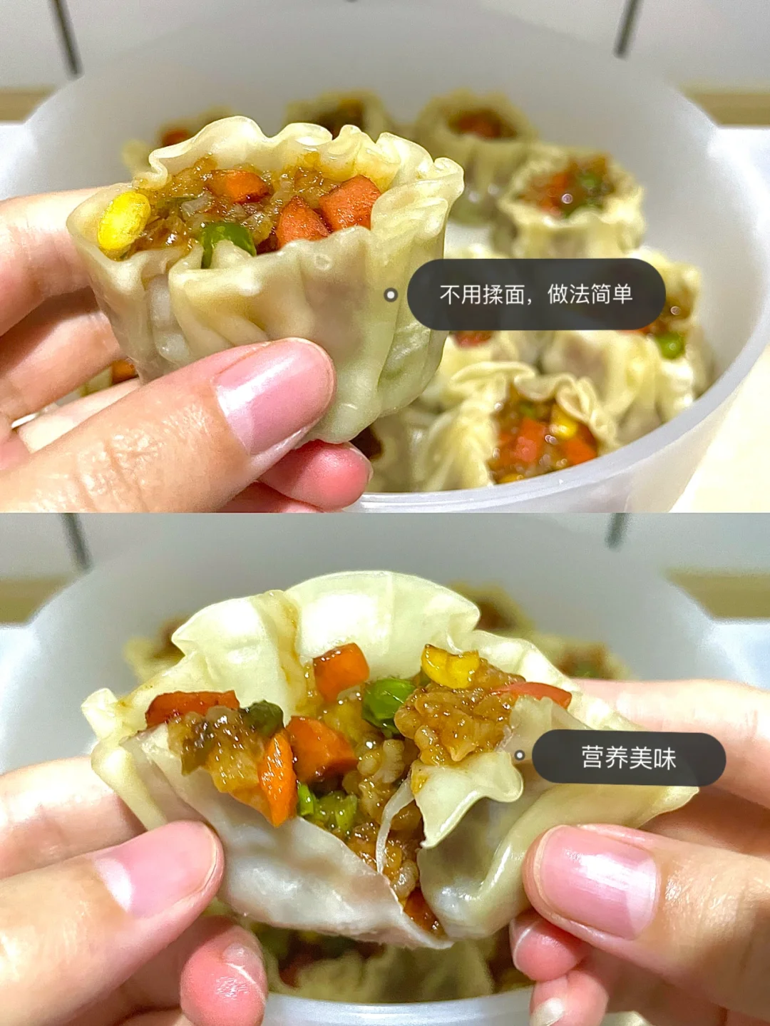 必须给你们安利这个小烧卖[赞R] [赞R] 一个一口,营养美味,皮薄馅大,简直太好吃了~💯 今天早餐🥣做了这个烧卖,都馋哭了隔壁小孩了~[哇R] 做法超简单[萌萌哒R] 喜欢的赶紧去试试~[斜眼R]