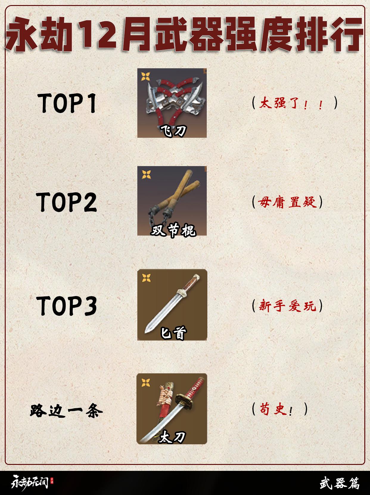 永劫全武器梯级排行。