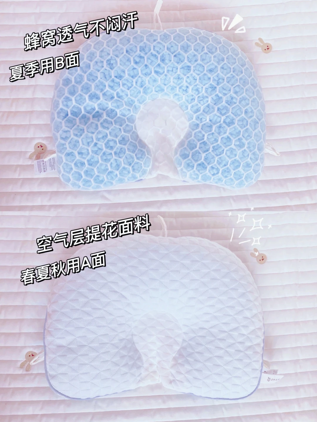 👏🏻嫚熙定型枕是双面设计的,A面空气层提花面料,棉柔亲肤,手感滑溜溜的,春秋冬都能用;