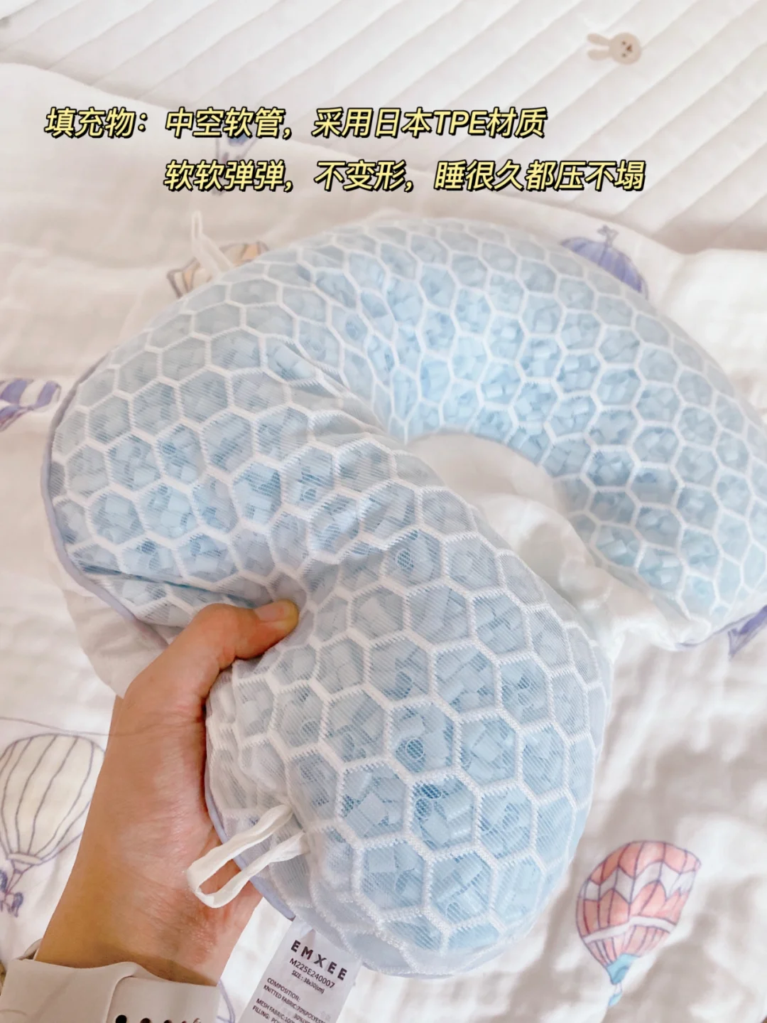 B面蜂窝透气的中空软管内芯,里面填充的是日本TPE软管,软硬适中,回弹性好,久睡压不瘪,长久使用也不会变形!蜂窝的透气网状散热性能很不错,夏季宝宝睡一整晚也不会一头汗,干爽舒适~