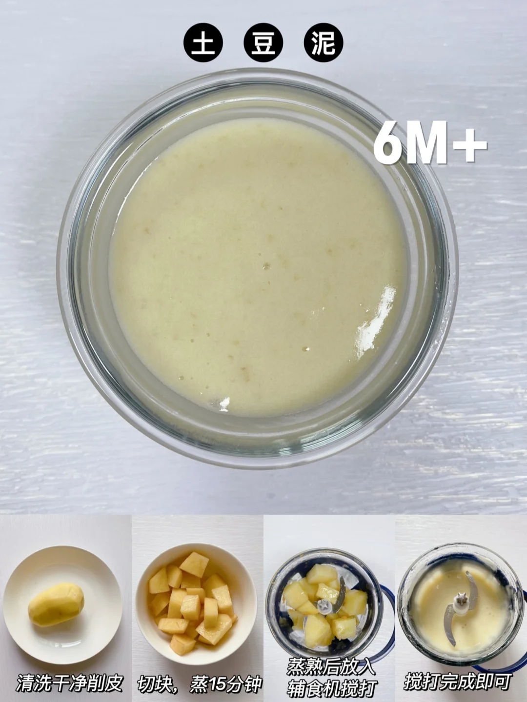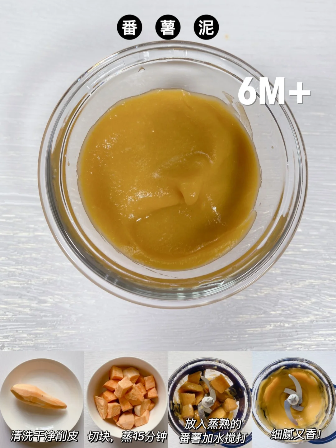 ▪️洗净去皮切块→蒸15-20分钟→放入辅食机加水搅打细腻