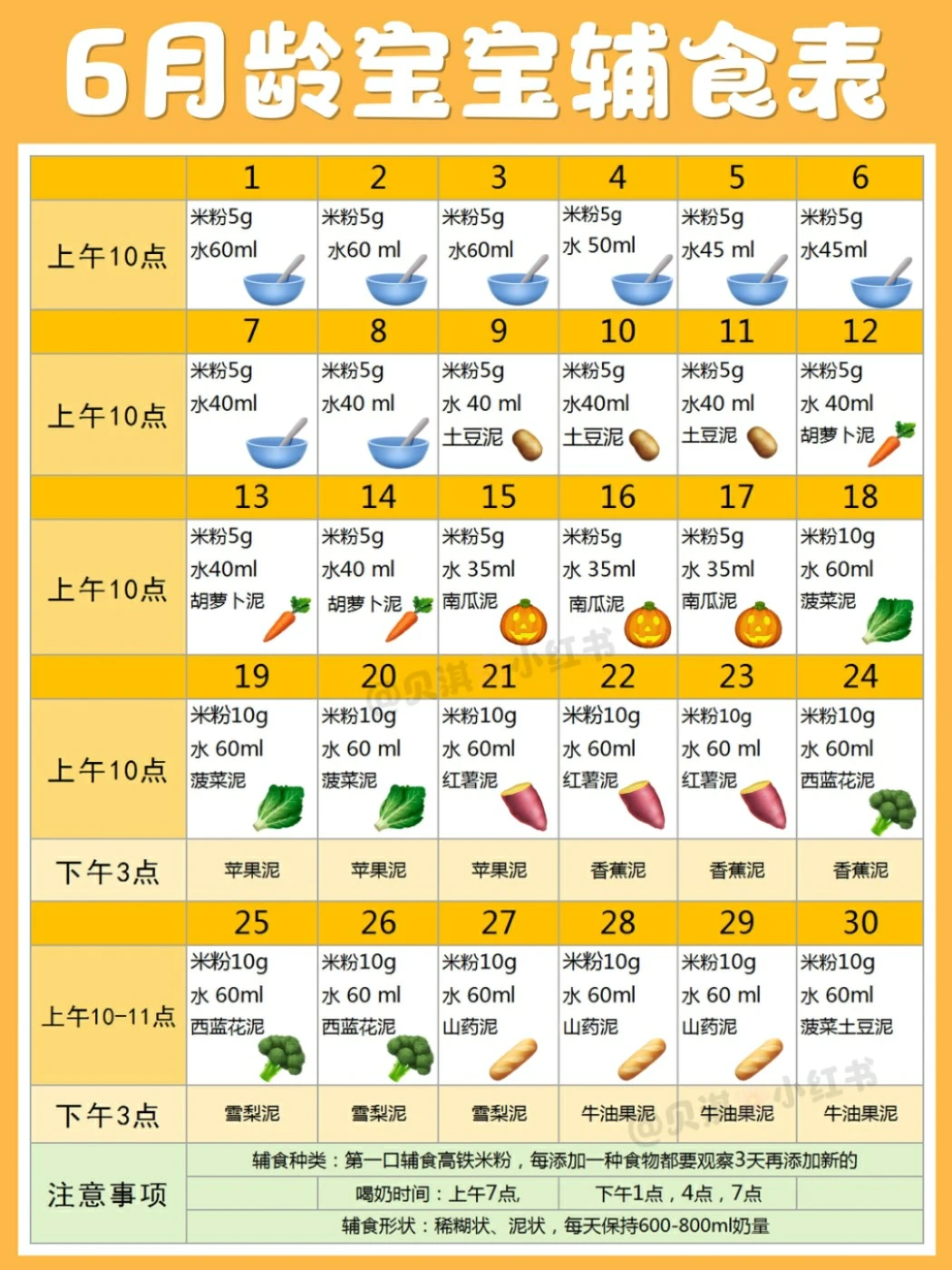 🤟以上就是宝宝蔬菜泥的制作方法,另6月辅食表请见图片,如果还有辅食相关疑问,欢迎在评论区留言。
