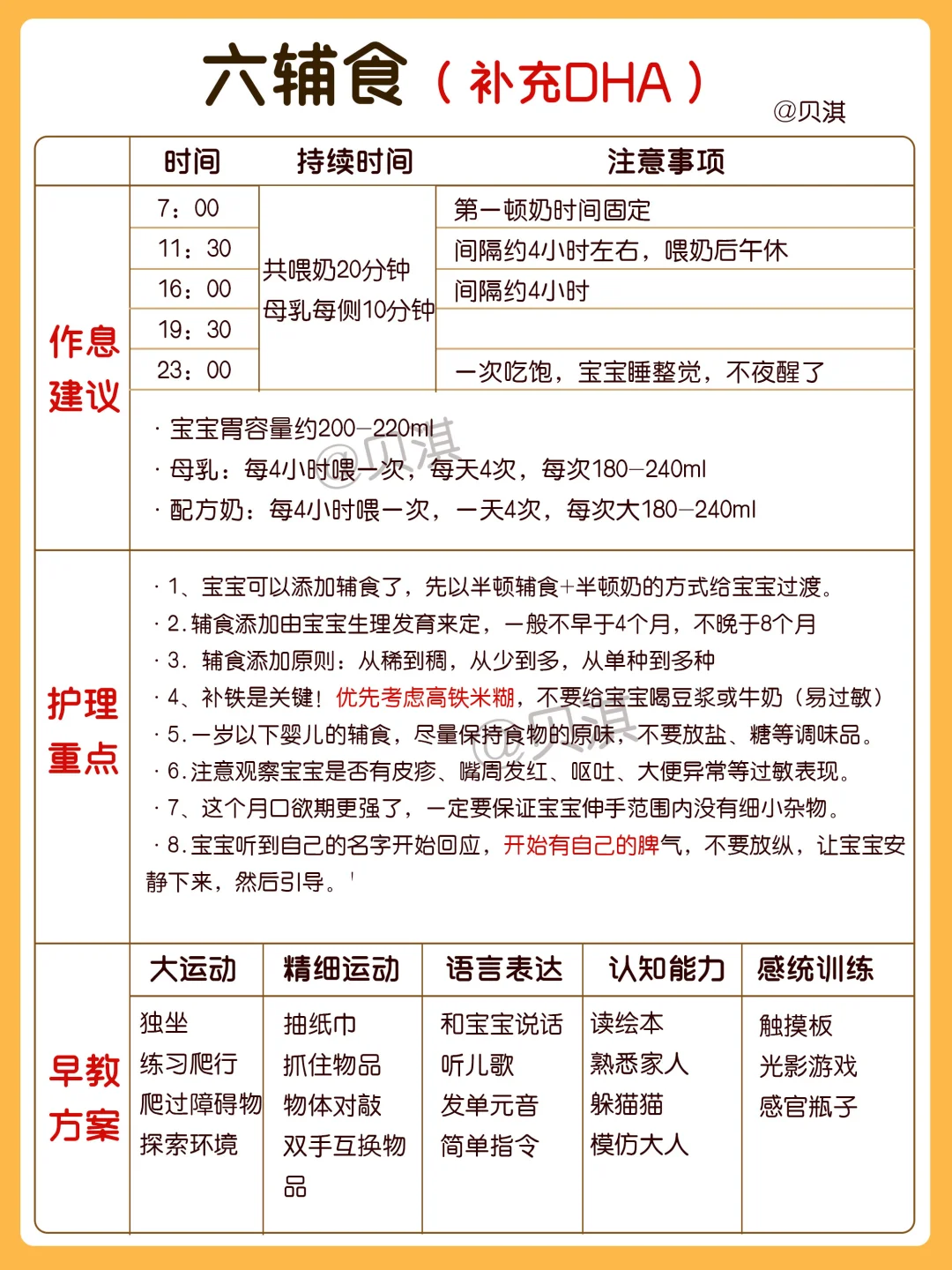 6-12个月宝宝辅食添加表!可打印照做➡️