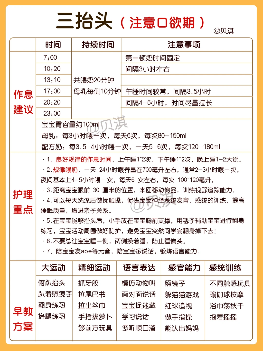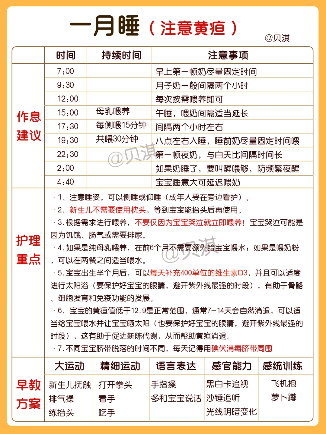 0-12月宝宝发育对照表‼️护理重点+宝宝早教