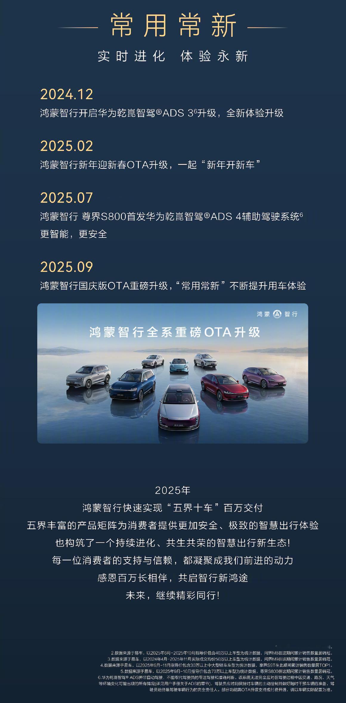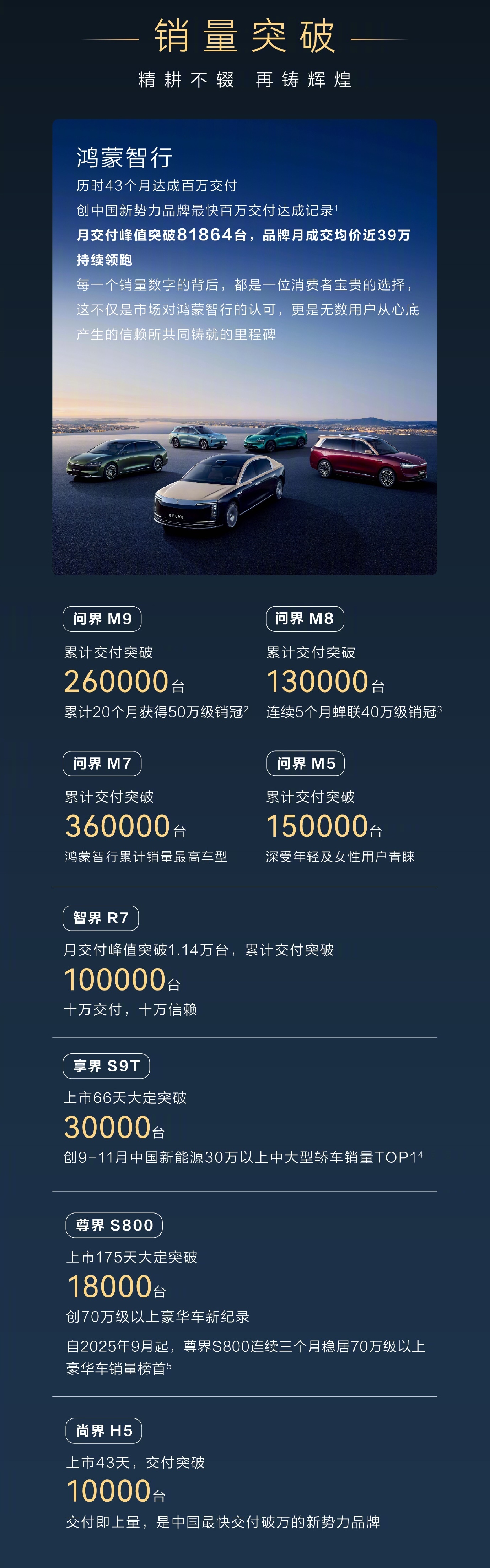 鸿蒙智行迎来了两周年,在新能源汽车领域里面,鸿蒙智行的成长,也是非常快。2025年整体的势头更猛了,车型更多,覆盖范围更大。现在五界齐上阵,在各个价位段都有闪光的产品。2026年,鸿蒙智行又会给出什么样的牌?拭目以待了。