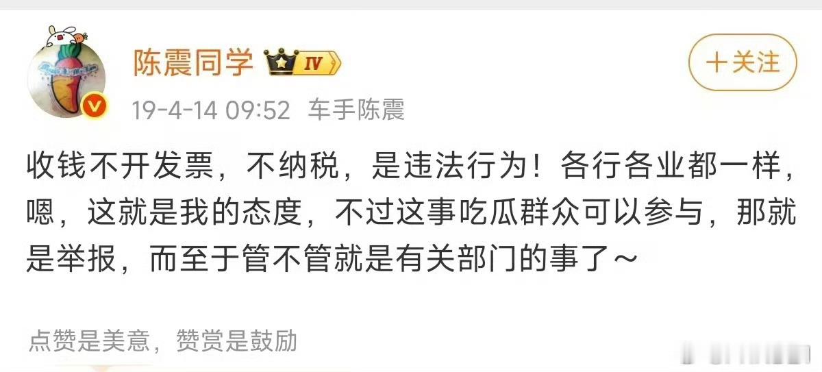 陈震回旋镖 那就是昨儿在群里看的这两张呗……偷税漏税这事儿对于非当事者来说体感还轻一些,对我个人来说,我印象最深刻的还是当年6AT版哈弗H9那个“如果我有一个指标”。为什么呢,因为那车我的确开过,还开了挺久。简单说:那个山寨霸道方向沉、涡轮lag大、变速箱每时每刻都是弱智以至于我经常只能手动模式开,油耗非常高,适时四驱几乎没法用,一万公里车就糠了。当时他把这么一个上手1分钟就明确的工业垃圾吹得非常神,他的狗还因为这个咬我很久,所以我印象很深刻。我这人很记仇的,就像那时候不会用奔驰雨刷、还到我们病房闹事、后来在监狱里踩缝纫机的王政源什么的。哦对还有残疾人那事儿。所以如今这样,我持幸灾乐祸态度。