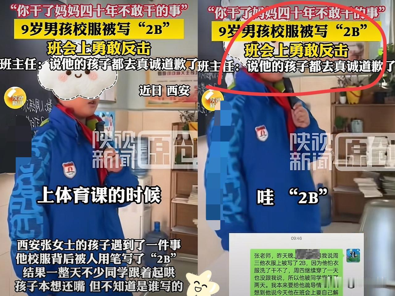 西安这位9岁男孩也太刚了!妈妈发现他校服背后被人写了“2B”,得知孩子被同学嘲笑了两天,妈妈气得要找老师,他却淡定拍板:“班会我自己解决!” 这哪是小学生,分明是揣着大智慧的小大人!没哭哭啼啼告状,没咬牙切齿反击,站在讲台只说一句:“你们被欺负我会帮,那你们这样对我,觉得对吗?” 一句话就让写脏话的同学红着眼道歉,全班响起掌声! 现在太多家长把“保护孩子”做成了“包办一切”,孩子受点委屈就冲上去替他出头,却忘了成长本就是学会自己扛事! 这位妈妈的做法太圈粉,不干预不指责,只悄悄联系老师记录过程,这份信任才是孩子最大的底气! 真正的强大从不是以牙还牙,而是受了委屈仍能保持善良和理智;最好的教育也不是遮风挡雨,而是教会孩子直面风雨的勇气! 毕竟,能自己解决问题的孩子,未来无论走到哪里,都能活得从容又坚定!