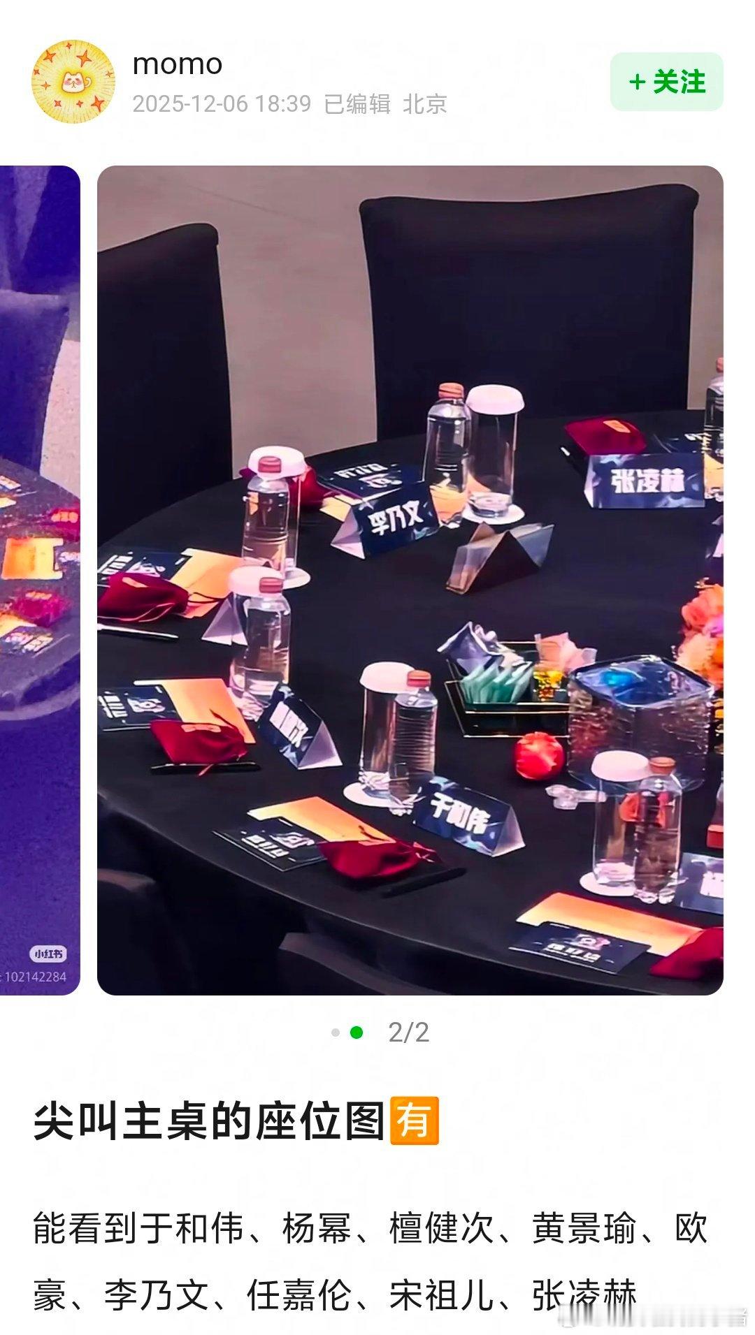 今晚活动主桌位置:于和伟、杨幂、檀健次、黄景瑜、欧豪、李乃文、任嘉伦、宋祖儿、张凌赫,唯一 95 生张凌赫入座,爱你的含金量还是太高了