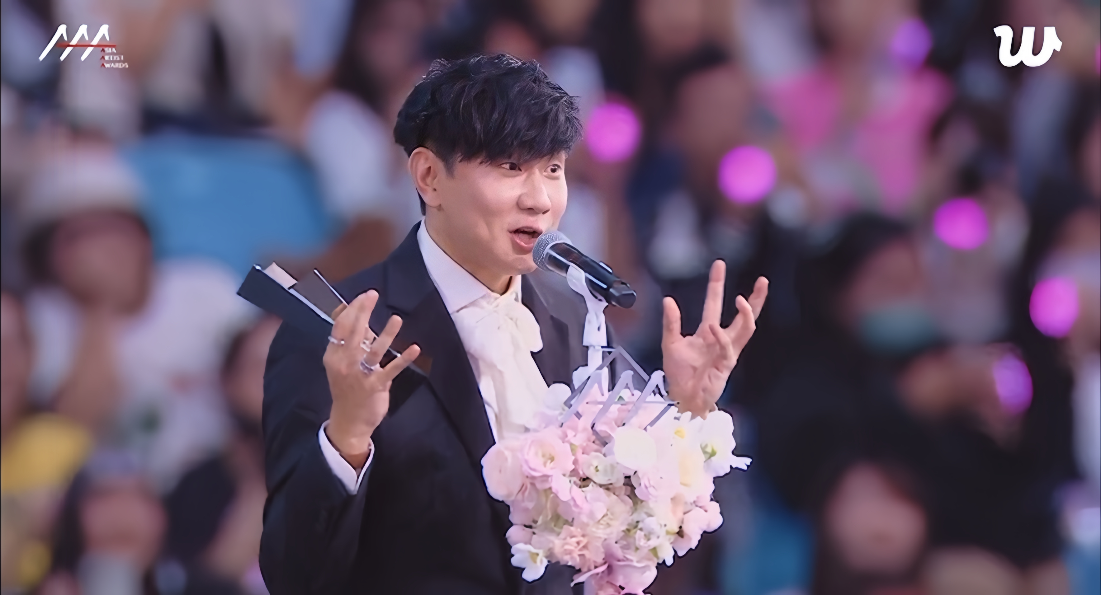 林俊杰哈哈哈哈到底什么奖让瓜这么震惊英文都不会说了哈哈aaa红毯好帅好甜啊
