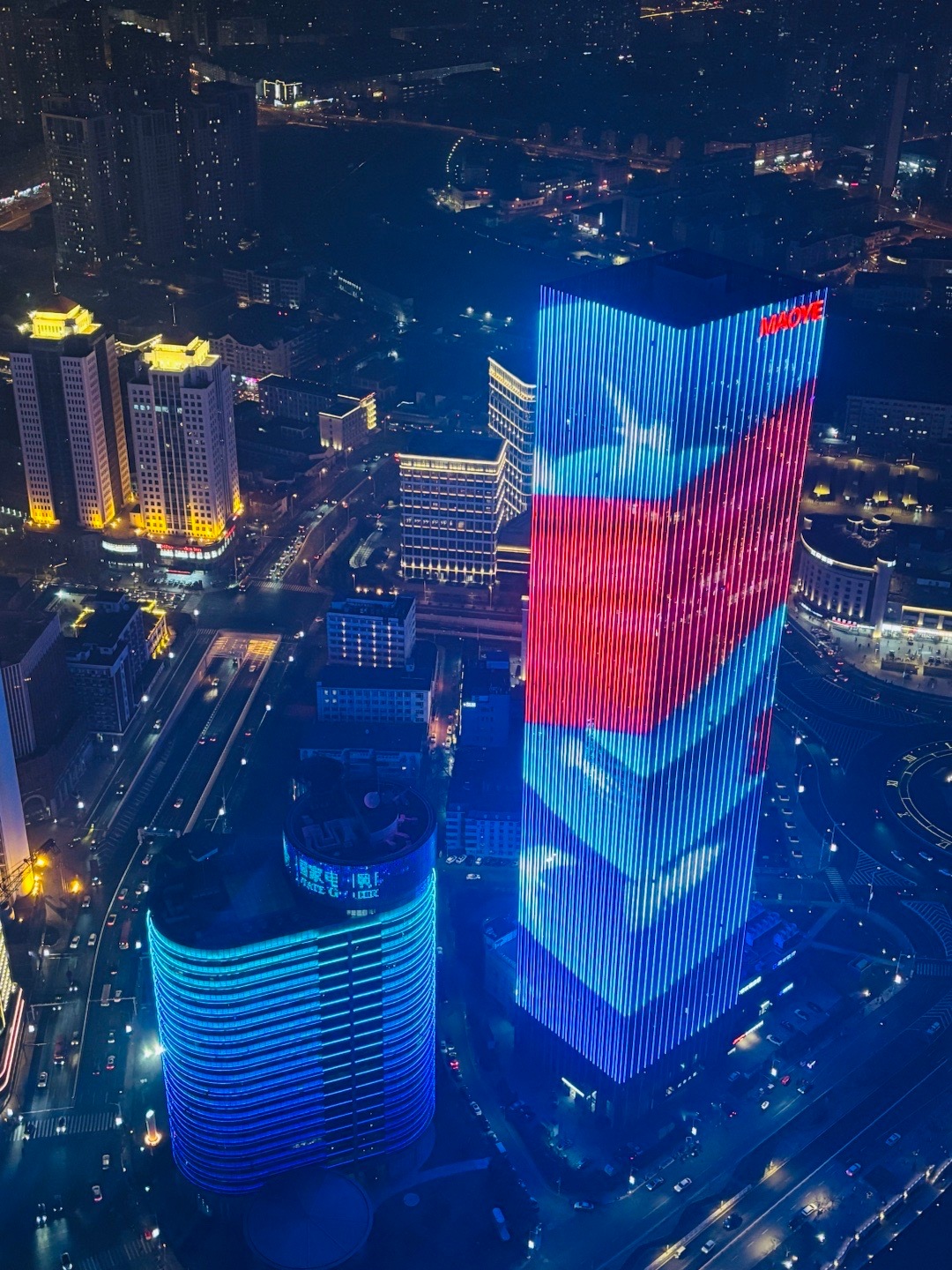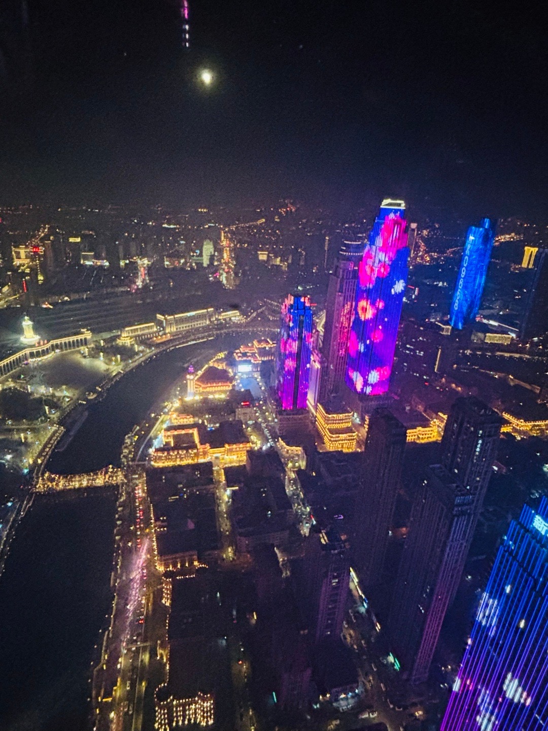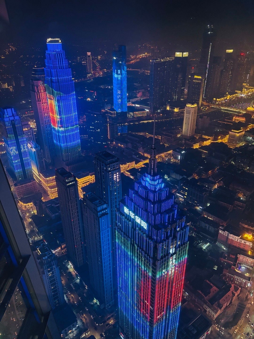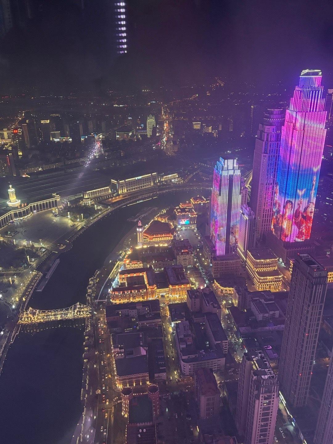 俯视,天津的城市之巅。天津之心津塔观光厅尖叫之夜天津文旅 天津·天津环球金融中心