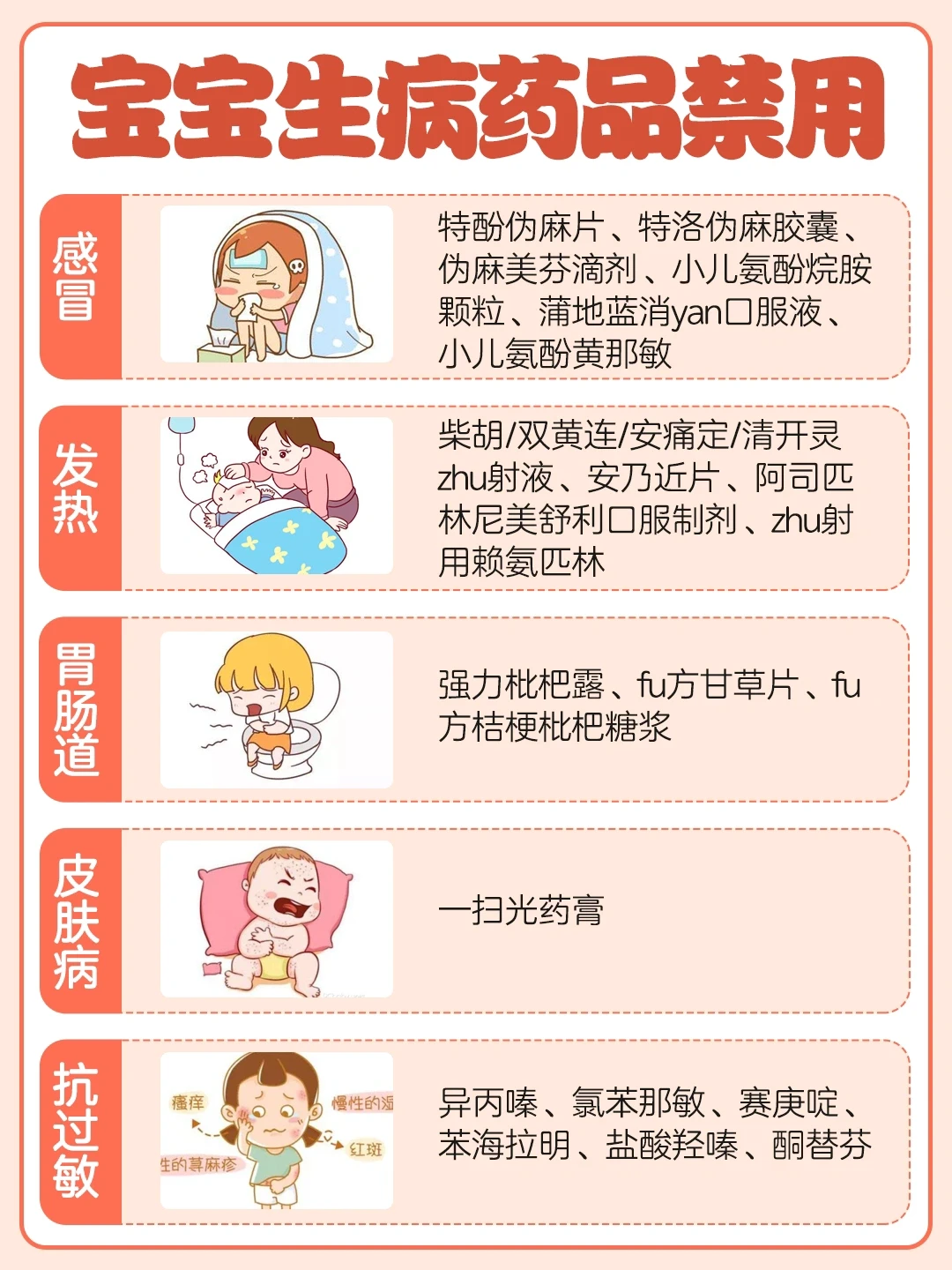 我还整理了宝宝生病禁用的药品,妈妈们也可以看下噢,是药3⃣️分毒,能不吃就不吃!希望孩子都能健康快乐的长大❤️