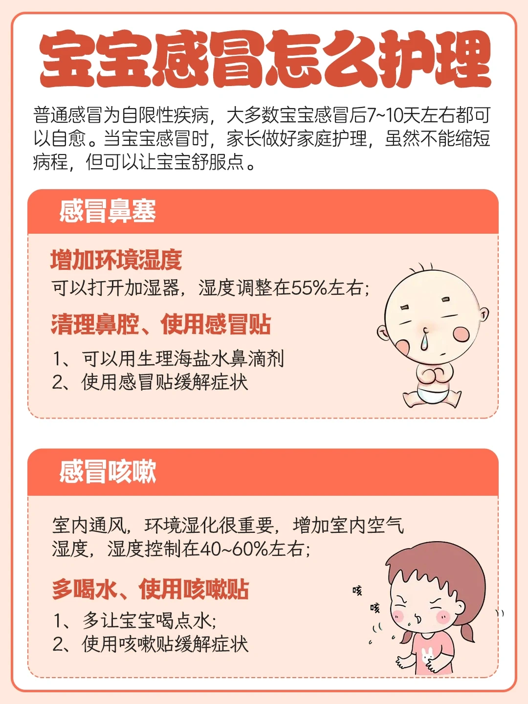 普通感冒为自限性疾病,大多数宝宝感冒后7~10天左右都🉑️以自愈。当宝宝感冒时,家长做好家庭护理,虽然不能缩短病程,但可以让宝宝舒服点