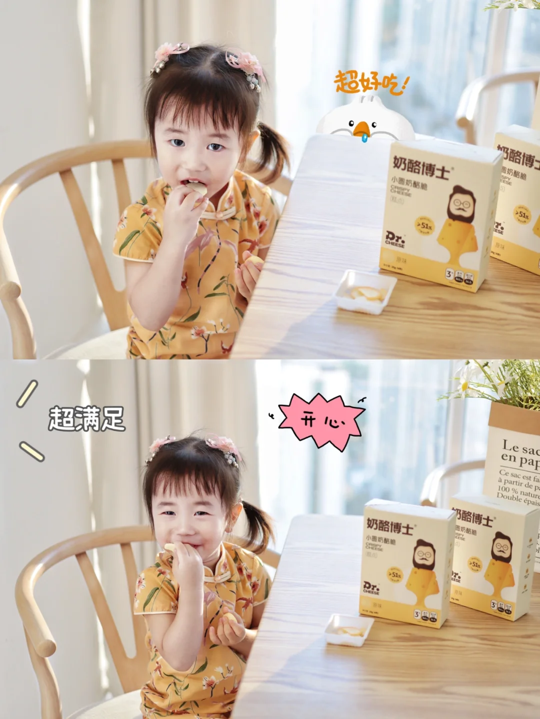 一次吃一两小袋还可以控制她的零食量,吃太多就不想喝奶吃主食了。现在为了培养她分享的好习惯,我也经常和她一起吃,这个热量很低而且是低温烘焙的不是油炸的哦~咔兹咔兹奶香太让人回味了,吃的不想停下来😄