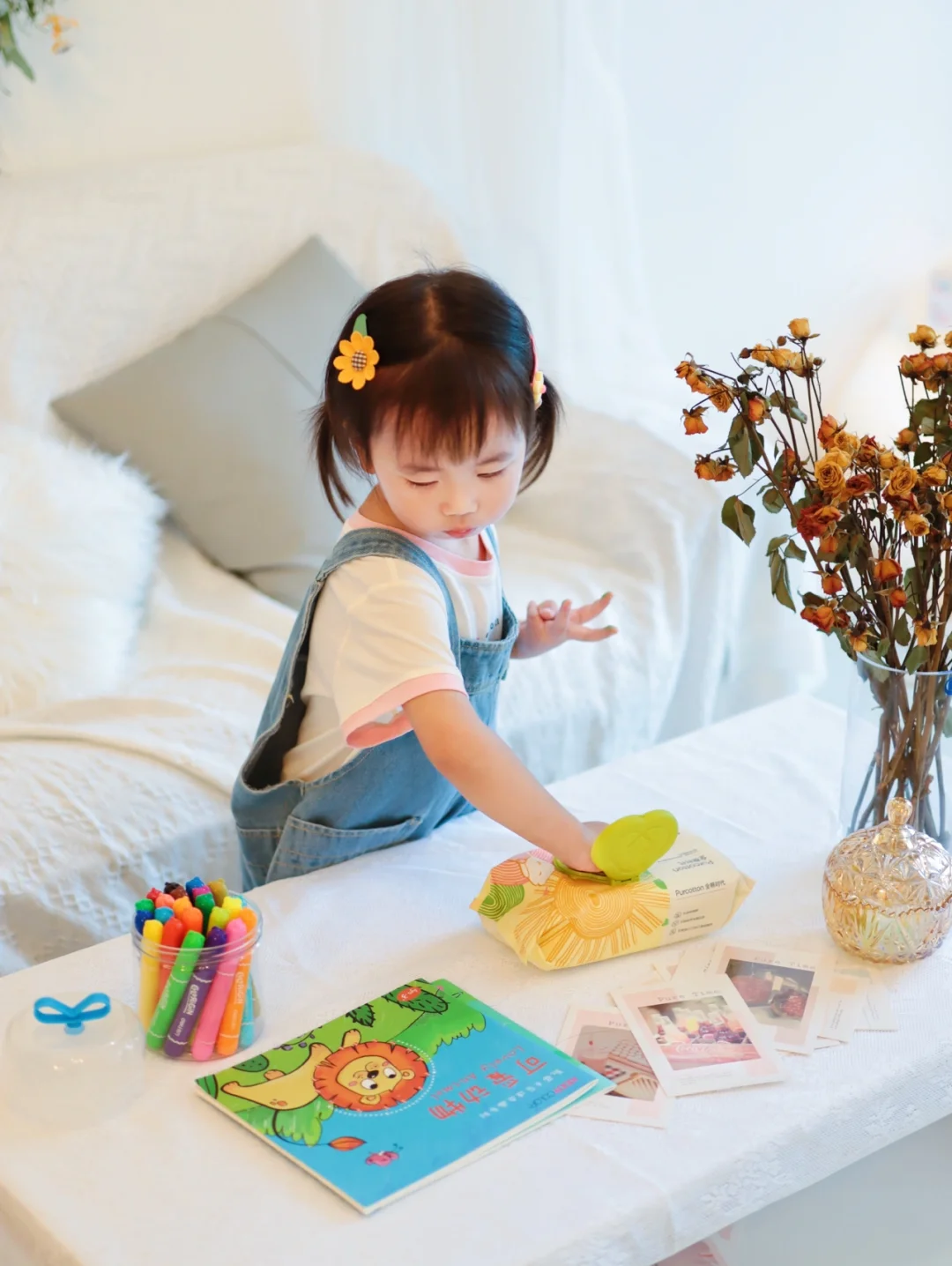 每次给孩子擦完👋手脸还会用来擦下桌子或者鞋子上的灰,一物多用,哈哈~如果带Cyndi出去玩,就带迷你湿巾,轻便容易携带,出去玩妥妥够用啦[斜眼R]