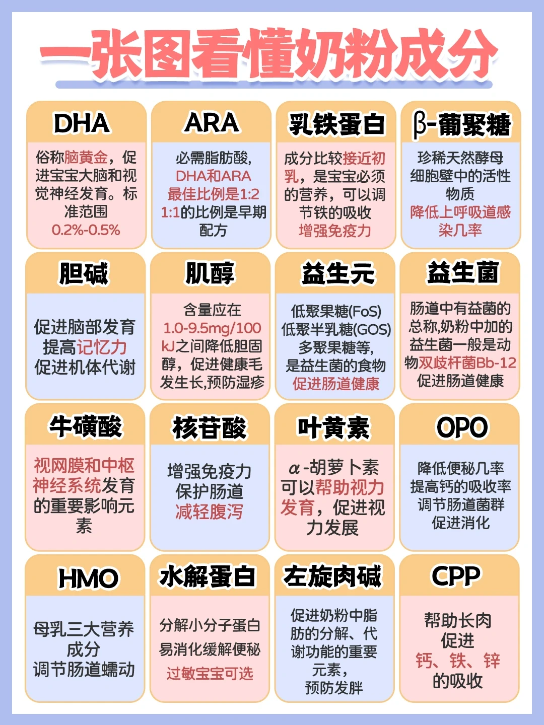除了国家规定必须添加维生素和矿物质以外,主要看强化配方,强化配方并非越多越好,要根据宝宝的体质进行选择,而我就比较看重对保护力有帮助的成分