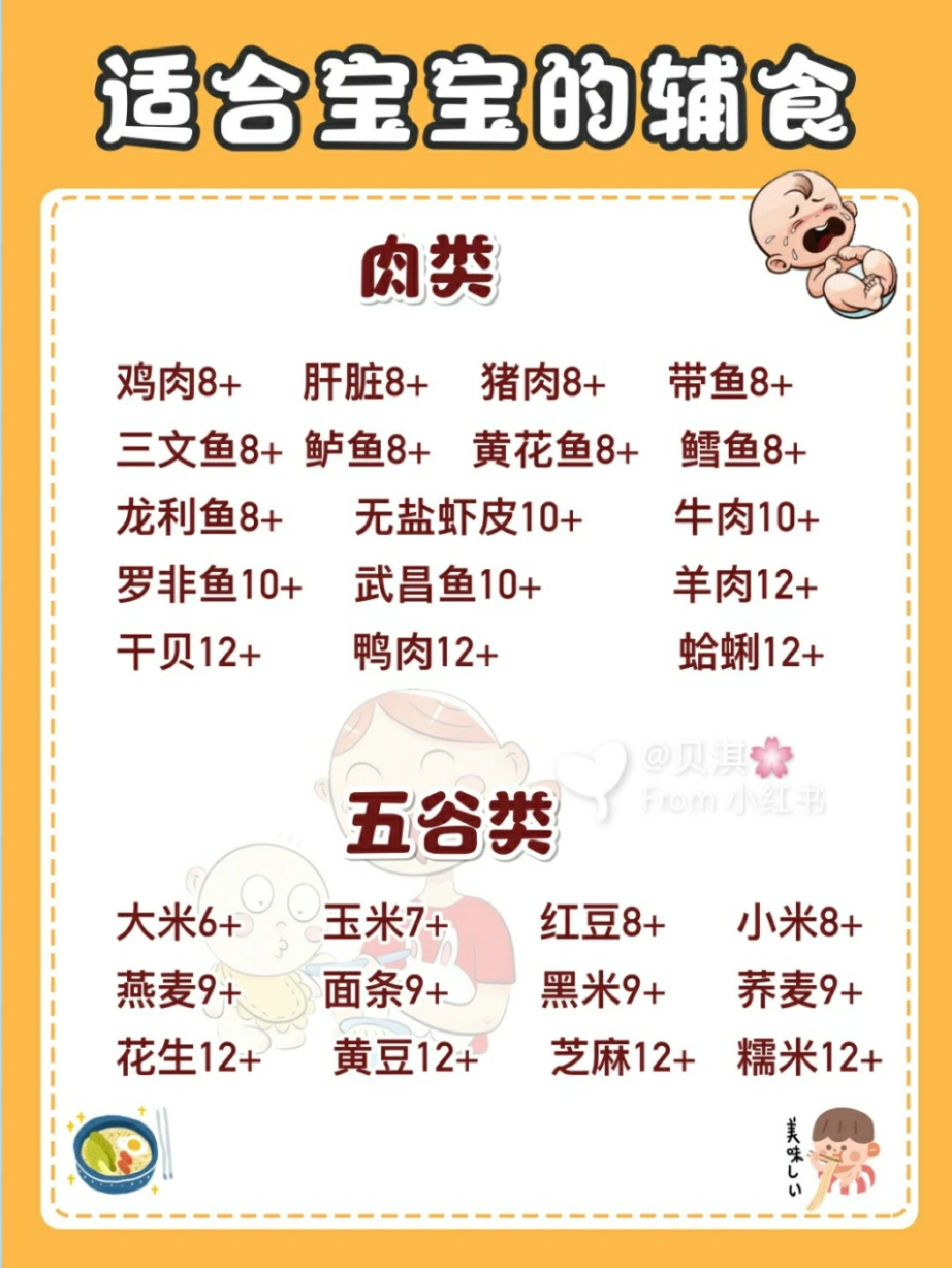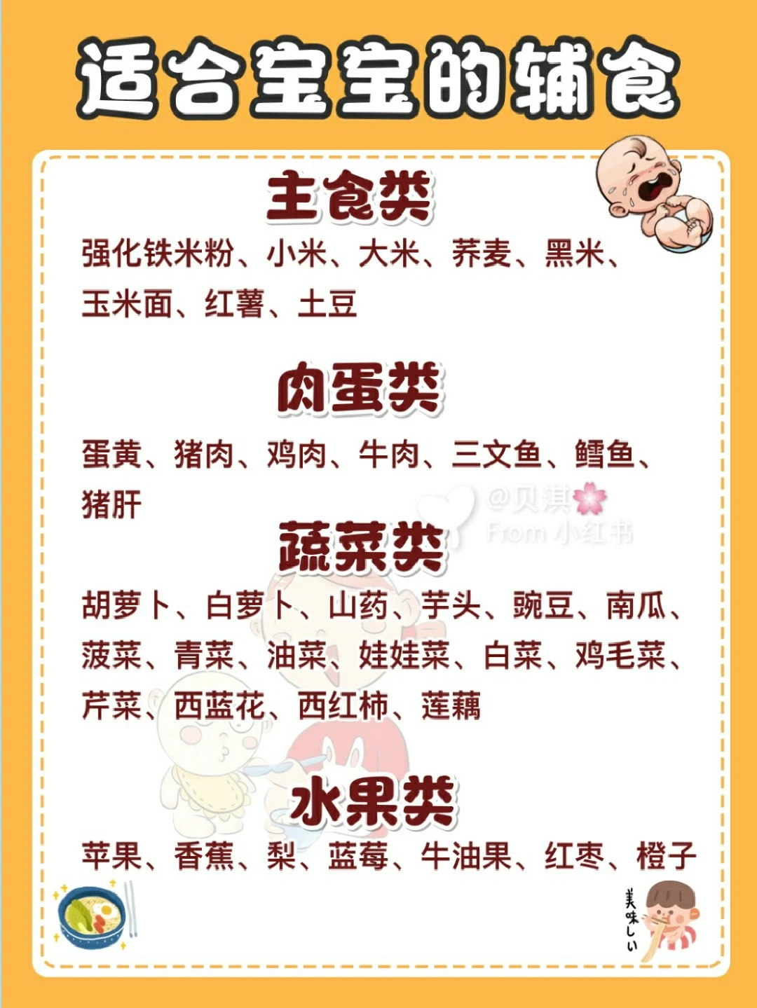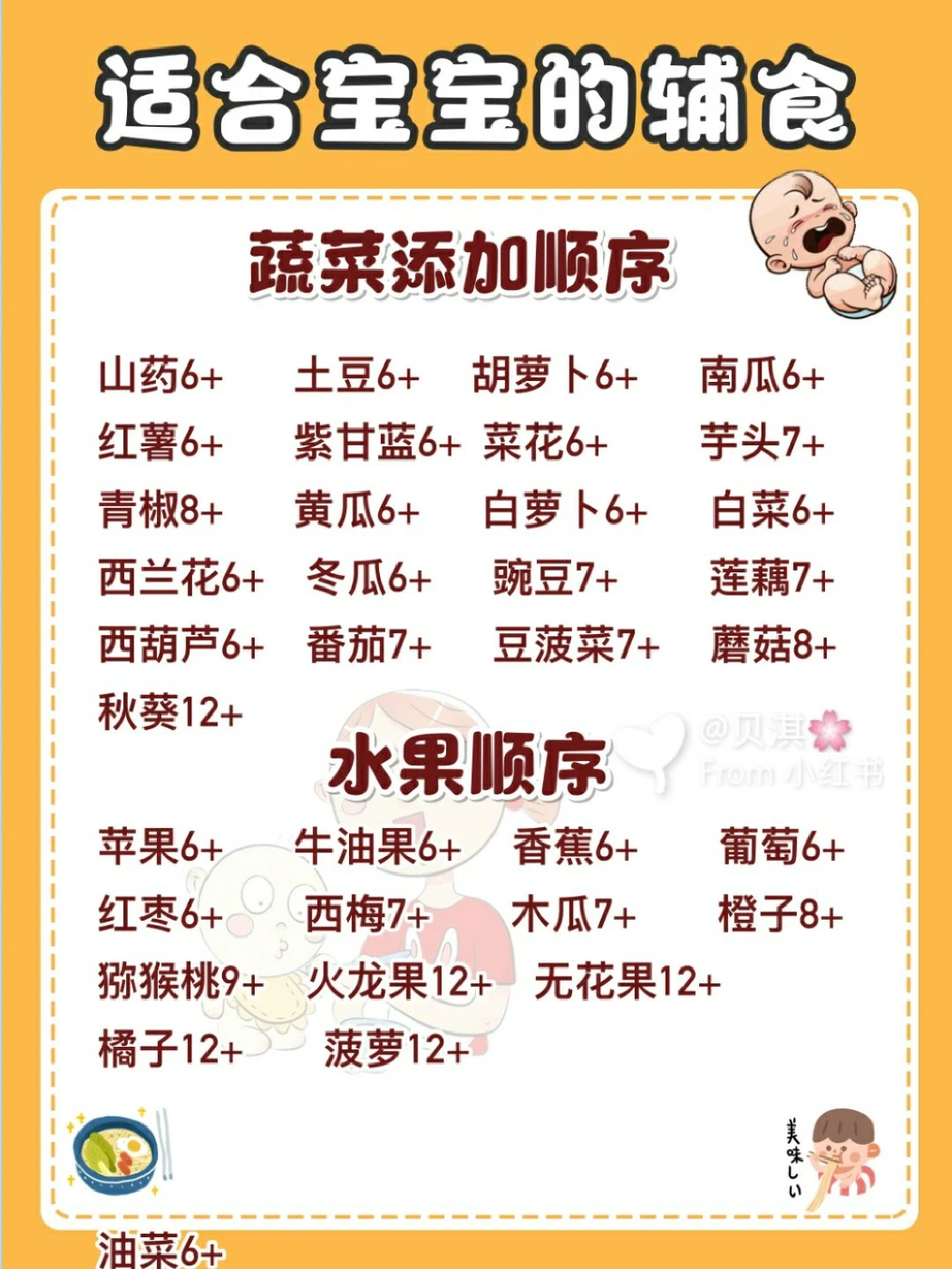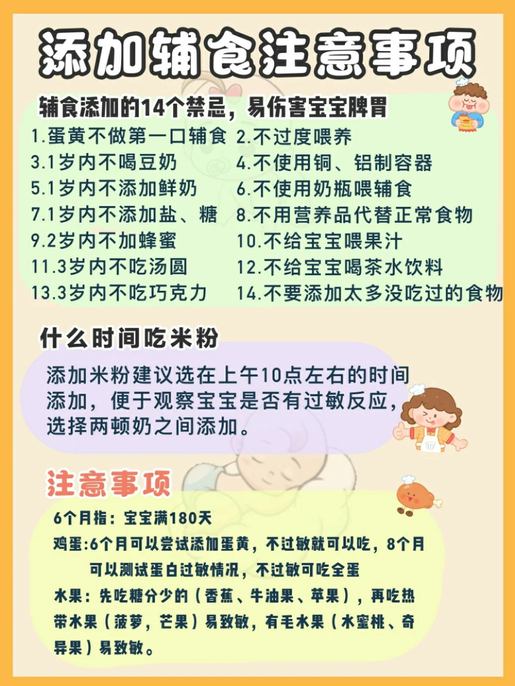 🔹宝宝6个月后添加辅食(不早于4月,不晚于8月)