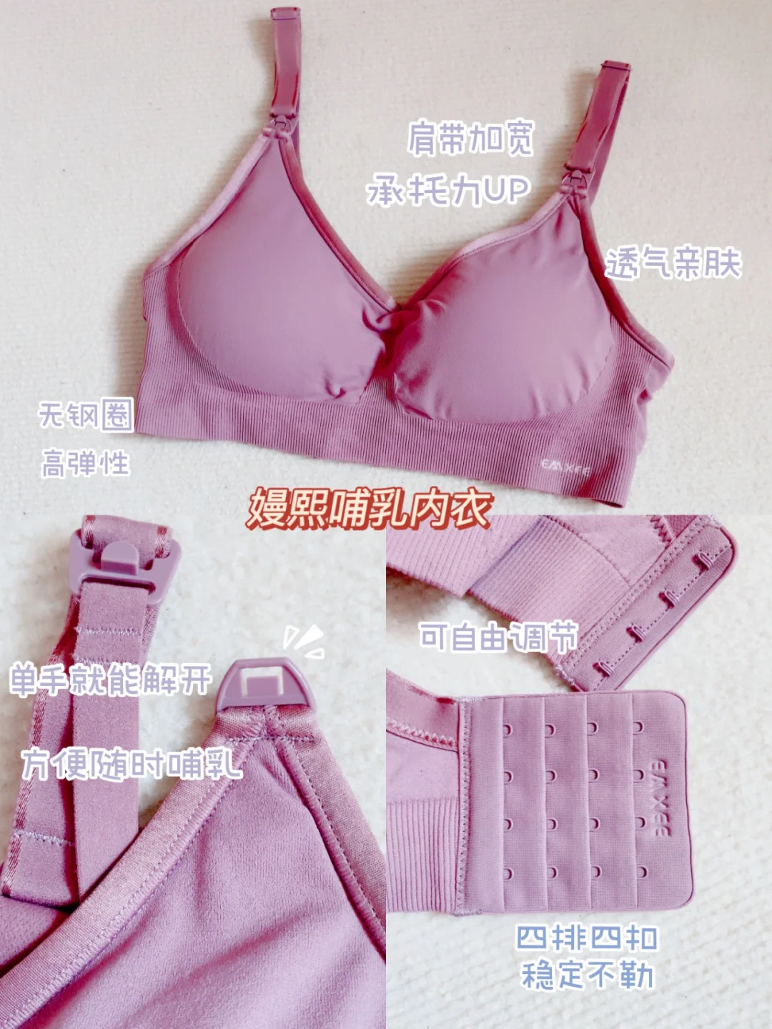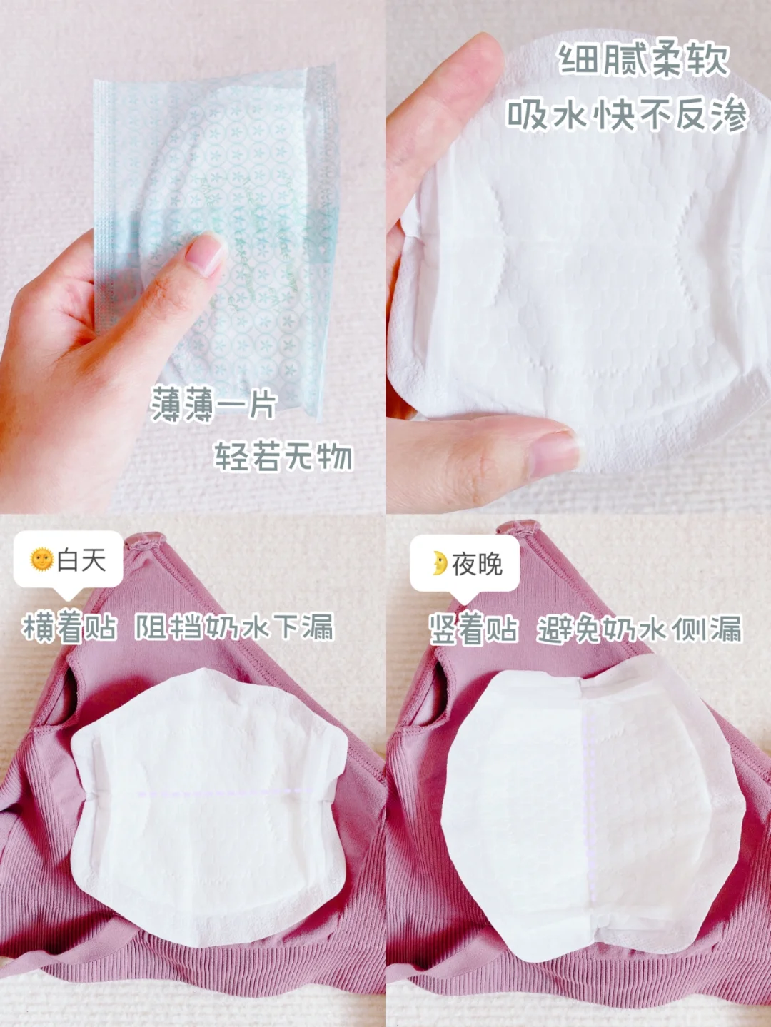 产后要穿没有钢圈的哺乳内衣,最好选肩带有加宽、承托力好的内衣,避免哺乳期胸部下垂。如果麻麻们还没有心仪的哺乳内衣,可以试试我孕期时穿的嫚熙内衣,单手就能解开卡扣,方便随时哺乳,超细旦纱面料柔软透气!承托力和防下垂效果都不错,而且弹力很大,很适合刚开始哺乳那会儿胸部会随时变化的时期~另外她家防溢乳垫也很实用,又软又轻薄,吸得很快而且不会反渗,粘在内衣上没有异物感,轻轻一扯就可以撕下来了,整个哺乳期一盒刚刚好