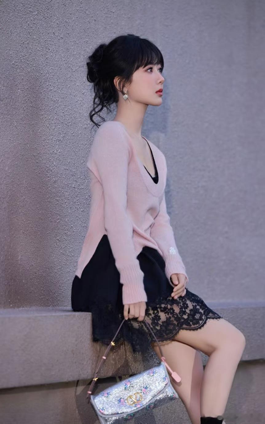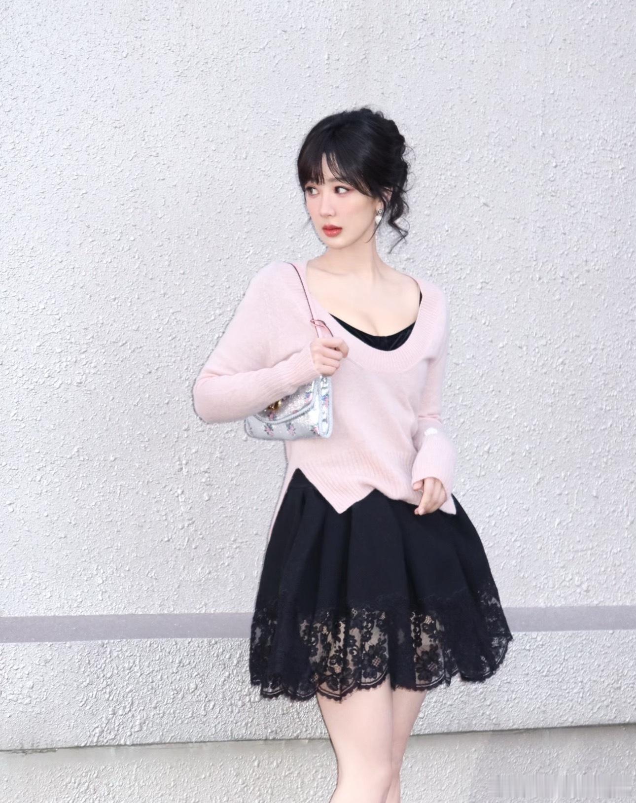 杨紫最新营业造型,今日穿黑色小短裙的🍇,这身又精致又吼看咧