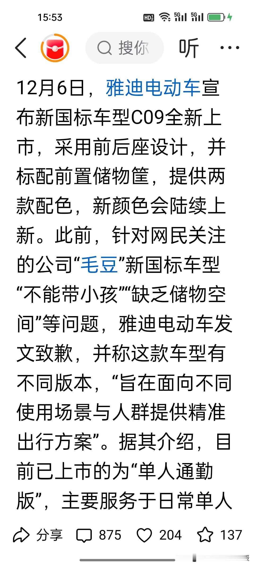 刚刚,雅迪官宣能载娃的电动自行车上市了,之前上市的单人通勤版本不能带娃,这款C09的样式,很多网友说跟之前的老款设计并无二样,只是这款卖得更贵。 有网友脑洞大开,设计出的图四,看起来更宽敞更舒适,有儿童专用座椅。雅迪这款可载人的新车,后面座位看起来偏窄,按照北京等地可以载16岁以下的青少年来看的话,15岁的男孩普遍都175厘米以上了,肯定坐着是不舒服的。而网友设计的后座比较宽敞舒适,确实值得借鉴。