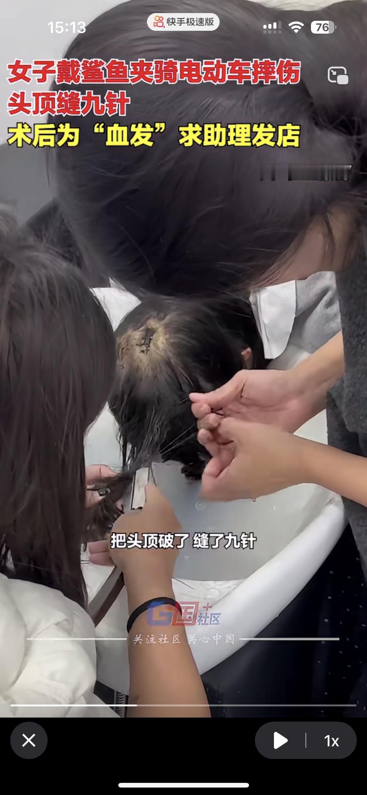 这哪里是发饰,这是要命的凶器呀 大家还敢用吗?一女子骑着电车摔倒了 缝了9针,差一点命都没了!要是简单的摔倒怎么严重,她戴了个鲨鱼夹,鲨鱼夹直接扎进她的头皮里,导致她受伤,如果在严重点,可能会危及生命!大家还是别用这么危险的发夹了