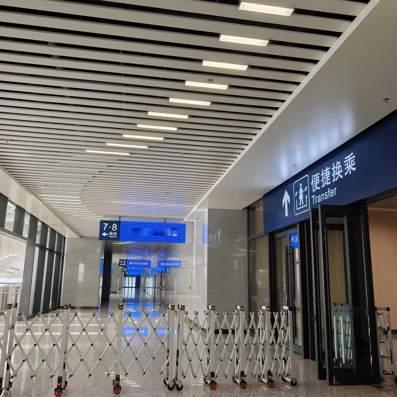 惠州北站换乘真是太便捷了! 于2021年12月10日竣工运营的惠州北站,站场规模为7台16线,既是高铁站“京港高速铁路”的客运站,又是城际站“广惠城际铁路”的客运站,还是将来惠州地铁1号线、5号线的客运站,你说有多么方便啊! 在这里换乘,简直不要太方便!火车到了“惠州北”,从下车到候车厅,充其量只需要1分钟!如何换乘?站台与斜梯,标语清清楚楚,明明白白,根本不用开口问任何人,跟着标志跟着感觉走就可以,快的话就30秒钟就能到到二楼候车室,等待下一趟火车,换乘在这里简单的得不值一提。