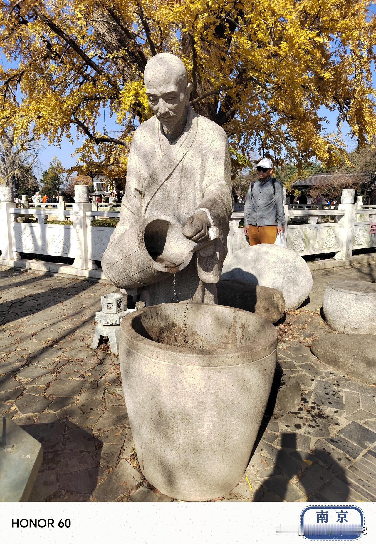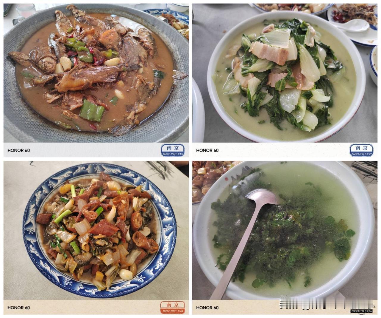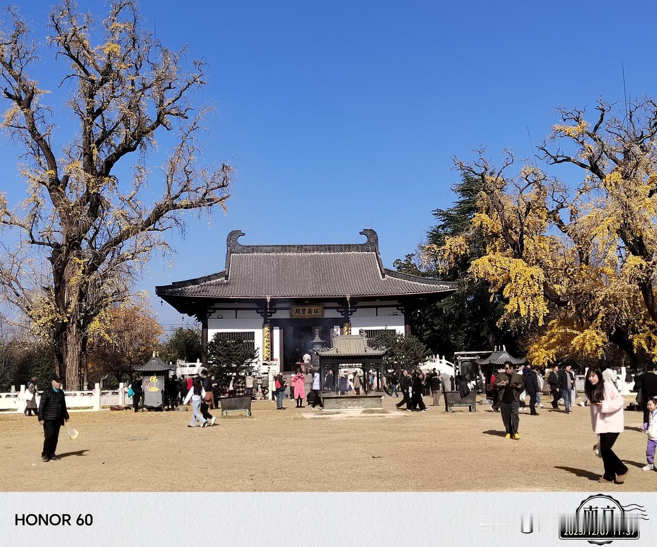 开车去南京浦口汤泉惠济寺,打卡参观千年古银杏树 时间:2025年12月7日 今天周日,南京市天气晴朗,气温7~20℃,非常适合外出赏秋游玩。上午开车来到了位于南京市浦口区汤泉街道的惠济寺,导航推荐的景区停车场已饱和,根据路口执勤民警的引导,顺利将车子停在社区附近的临时停车场内。周末来惠济寺参观的人也特别的多,惠济寺景区免费向市民开放。 惠济寺始建于南朝,寺内现存3棵稀世珍宝的古银杏树,树龄都在1500年以上,是南京地区现存最早的古银杏树。 参观完惠济寺,来到附近的汤泉农贸市场逛了一圈,农贸市场设在道路两侧,有村民种的各种蔬菜、农产品、家禽等岀售。在街上选择了一家叫“食全酒美”的餐馆吃中饭,餐馆生意火爆,点了红烧杂鱼、腌菜炒大肠、咸肉烧白菜、荠菜汤和米饭,3个人花费190元。还在农贸市场上买了新鲜的荠菜、白菜、腌菜等带回来。