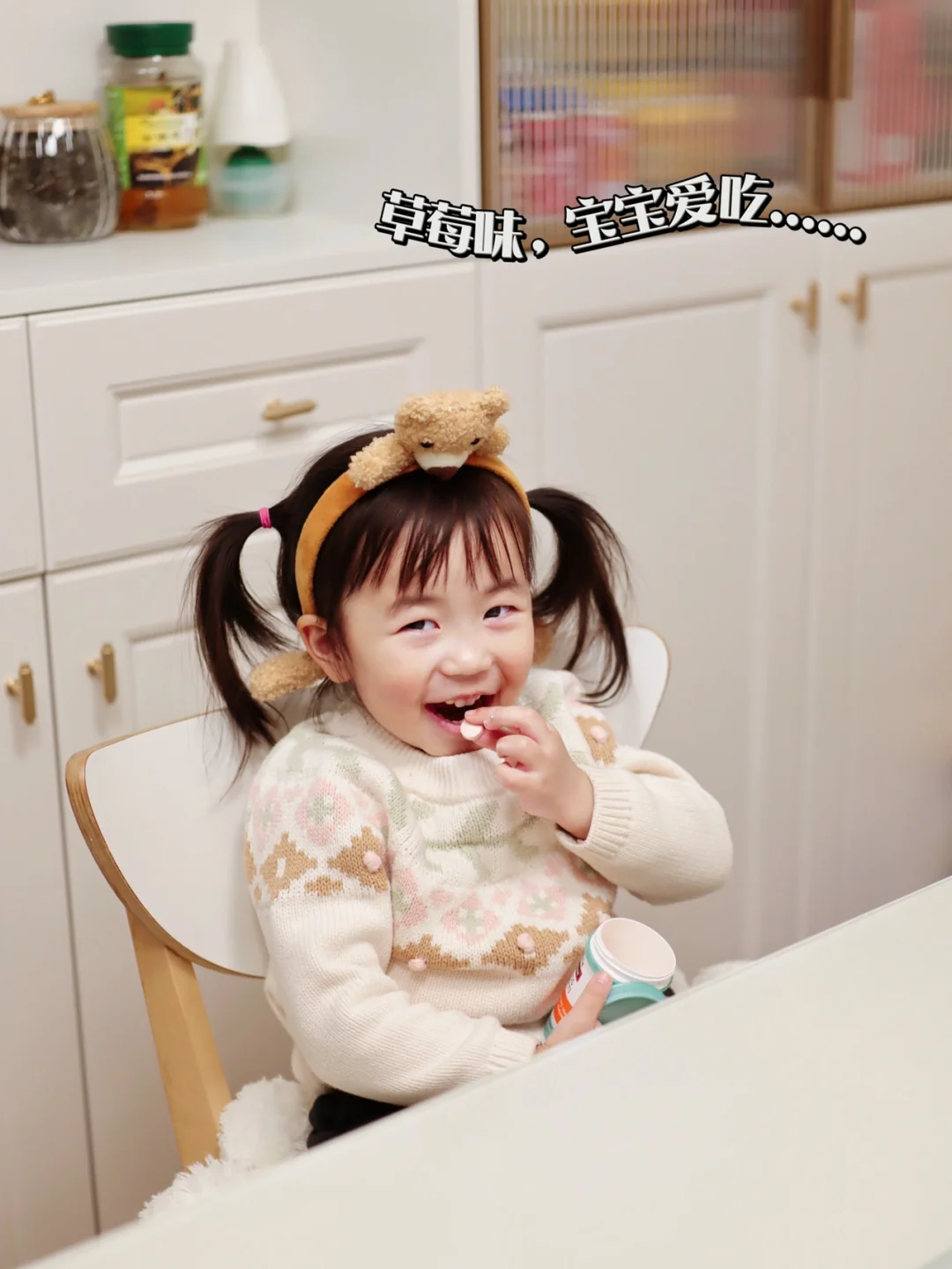 而且没有乱七八糟的添加剂,🈚️糖对于宝宝🦷没有负担,还是Cyndi最爱的草莓🍓口味,我都是放在她拿不够的地方,不然怕不注意她一下子就给吃完了😂