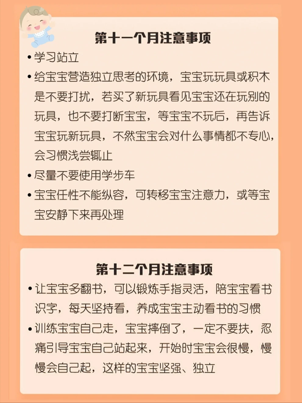 宝宝刚出生,新手爸妈都会不知所措,不知如何照顾弱小的宝宝。给大家整理了0―12个月每月宝宝注意事项⚠️,新手爸妈可以了解学习下噢~ 疫苗辅食早教互动都包含啦,一起学习如何让宝宝健康快乐的长大吧✊