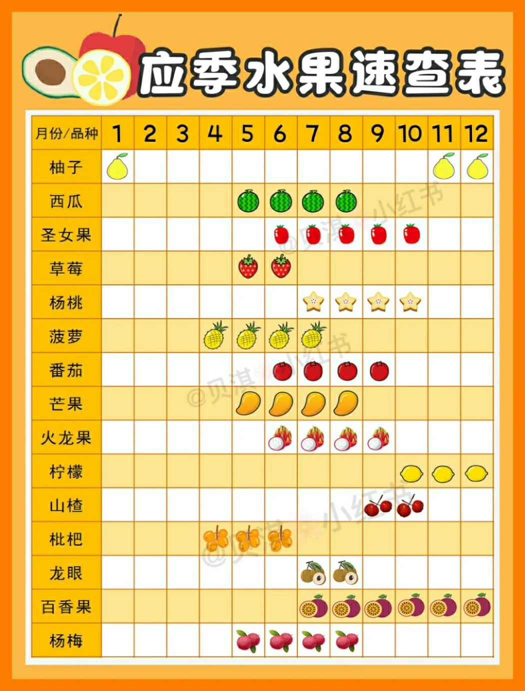 🌈各月份应季水果→见图⑤.⑥