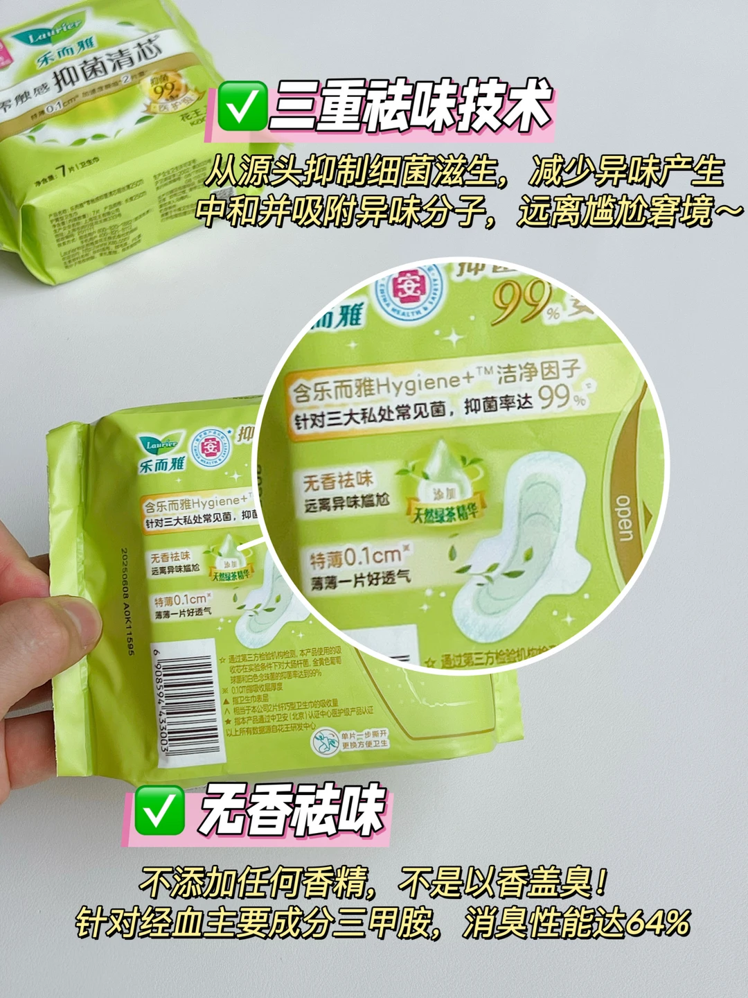 异味的核心在于细菌过度滋生,因此要选抑菌的卫生巾,可以看看乐而雅抑菌卫生巾,抑菌率99.9%,尤其能抑制白色念珠菌,三重祛味技术,能从源头抑制细菌滋生,减少异味