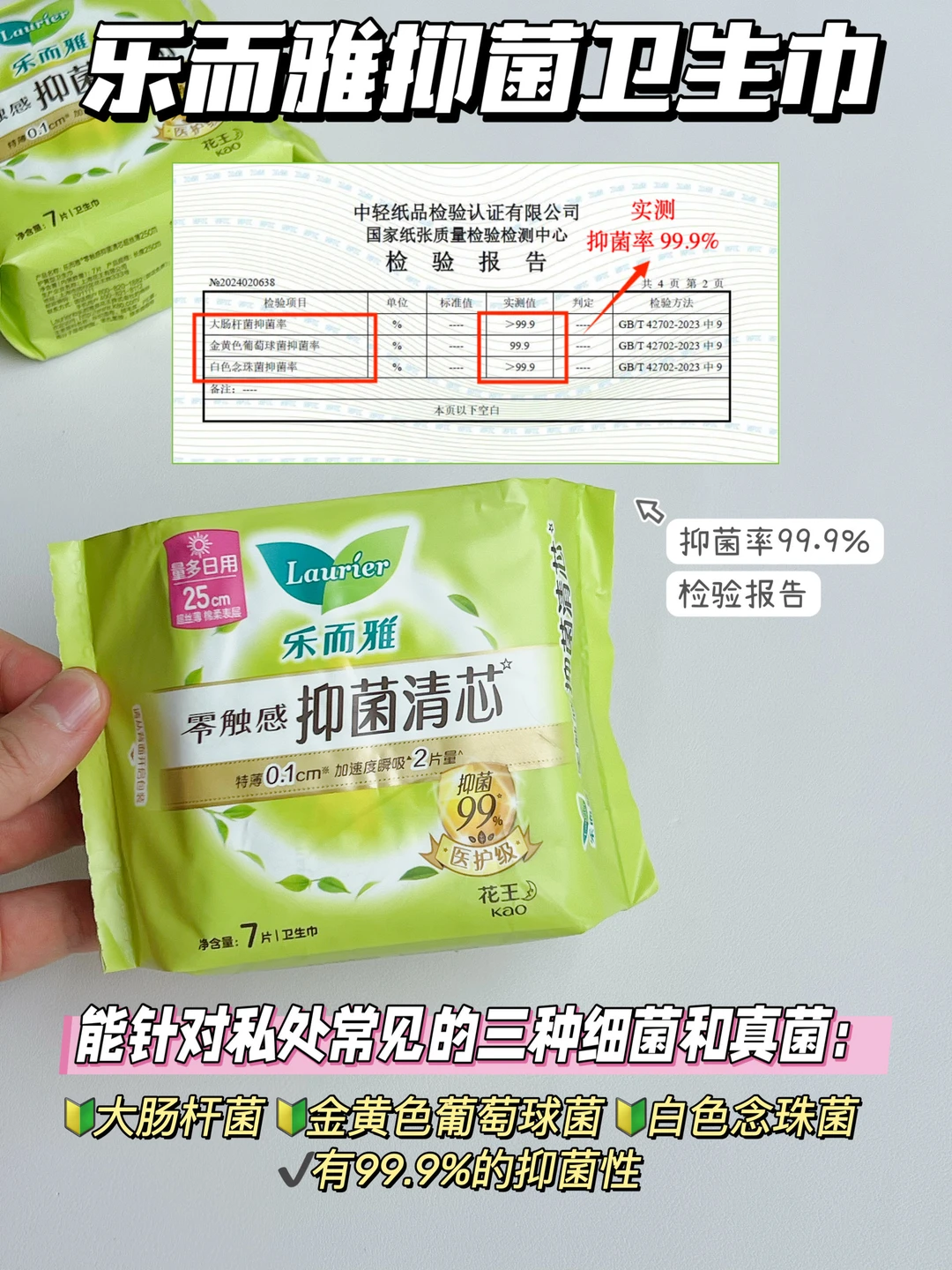 特别是在意异味困扰的女生,选择经认证有效抑菌功能的卫生巾,可以看看乐而雅抑菌卫生巾⭕️符合新国标,还有医护级产品认证和老爸抽检双重认证,抑菌率99.9%,能应对常见的三种细菌和真菌。