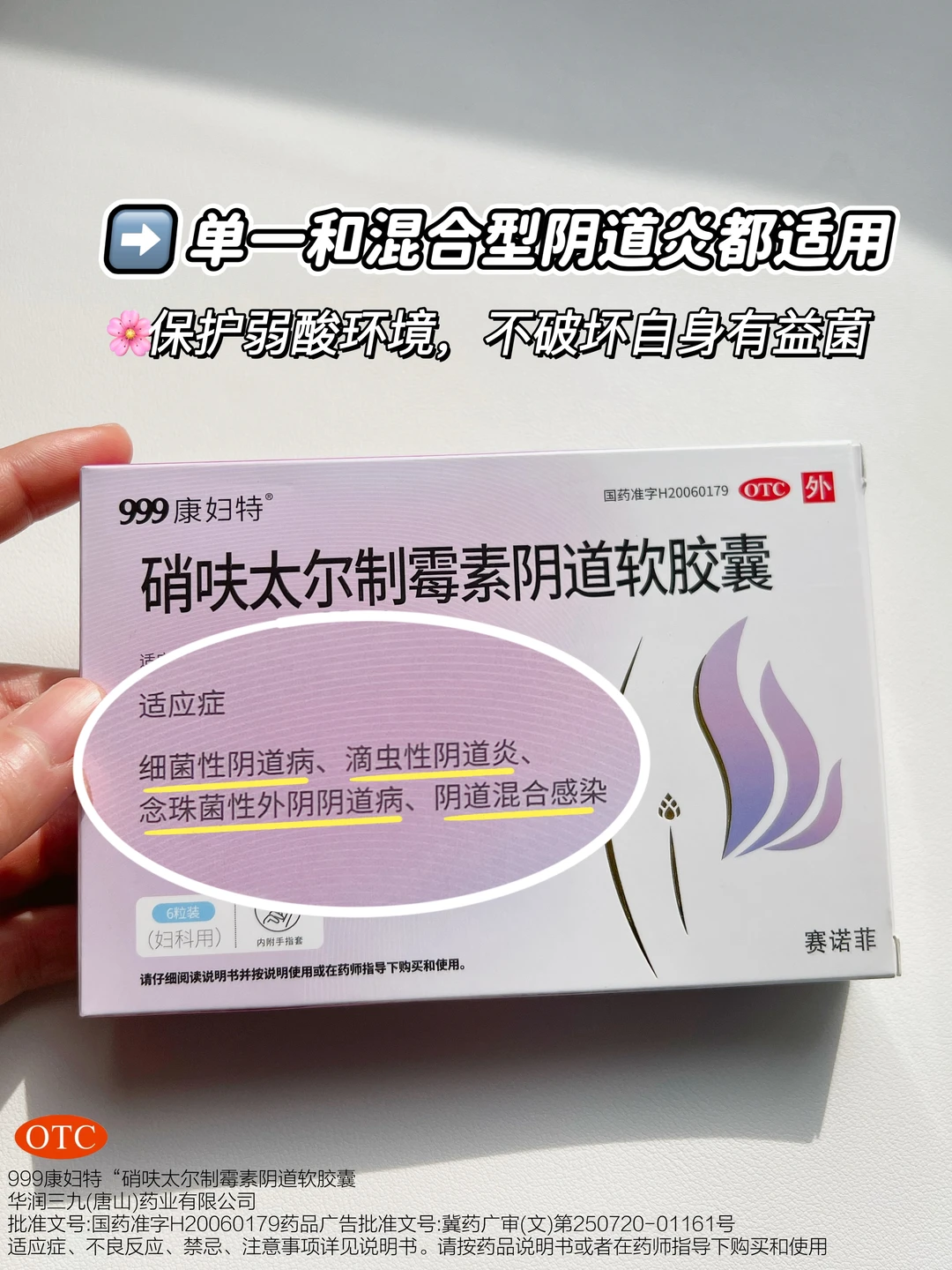 用药方面,我自己比较推荐999康妇特硝呋太尔制霉素软胶囊,