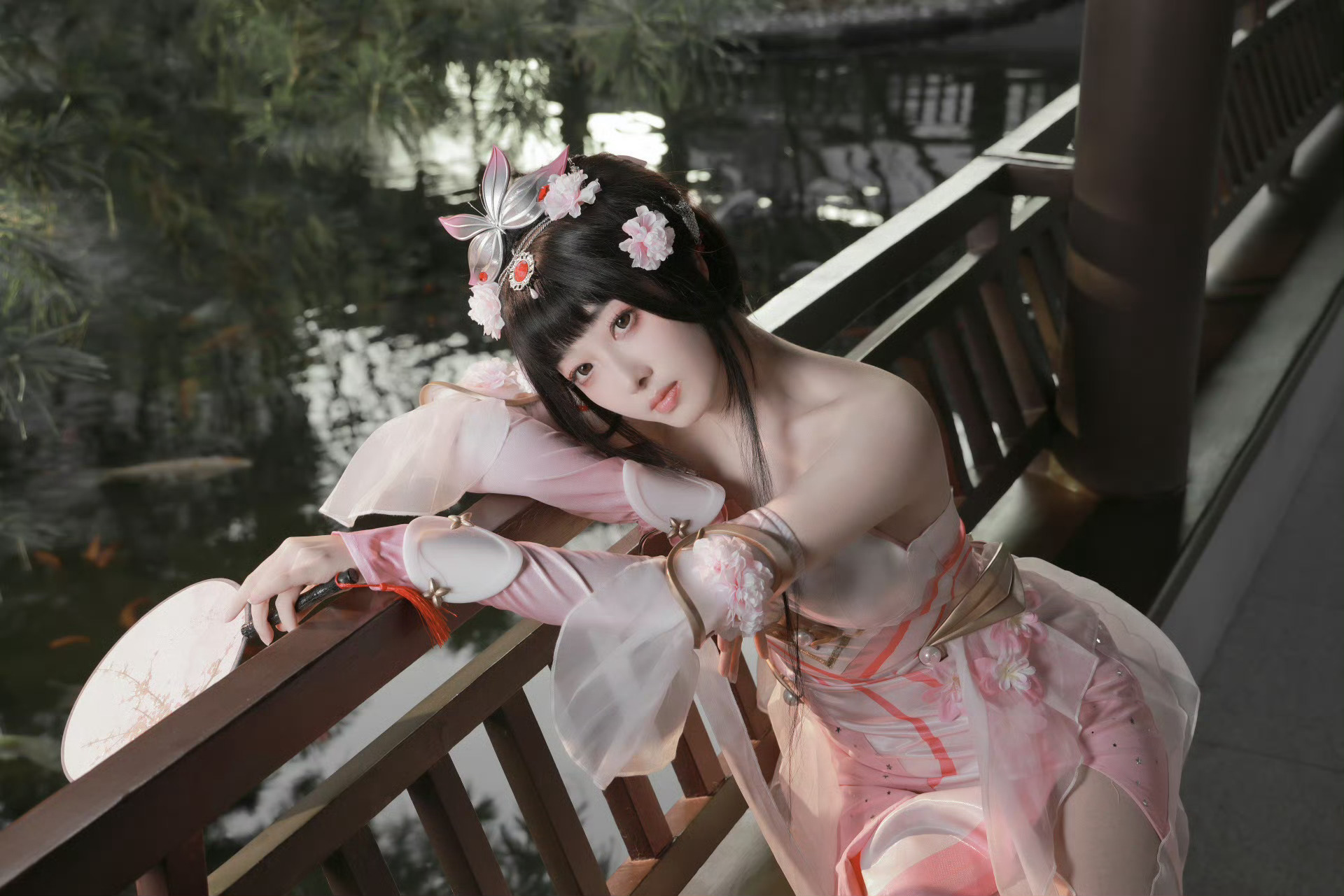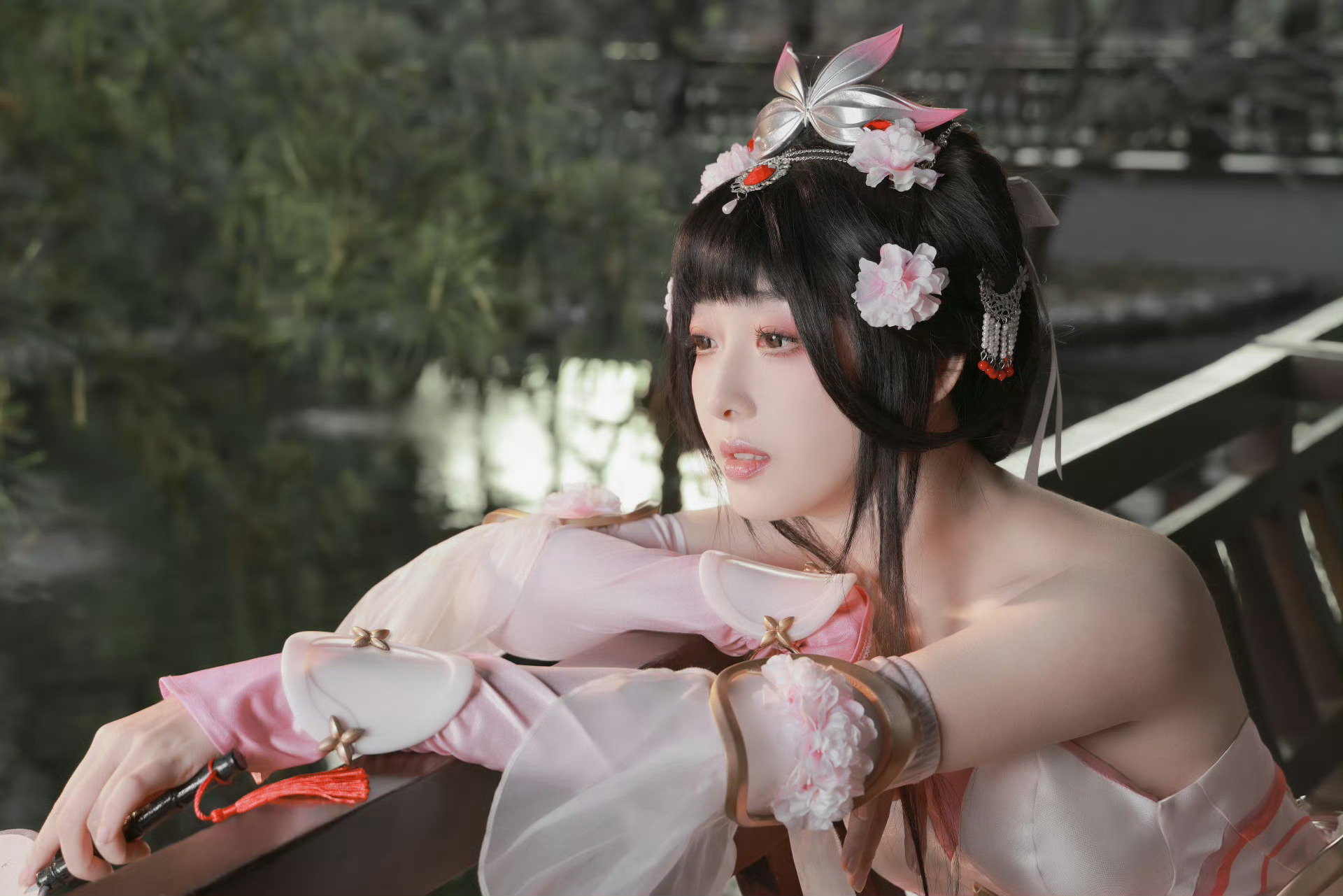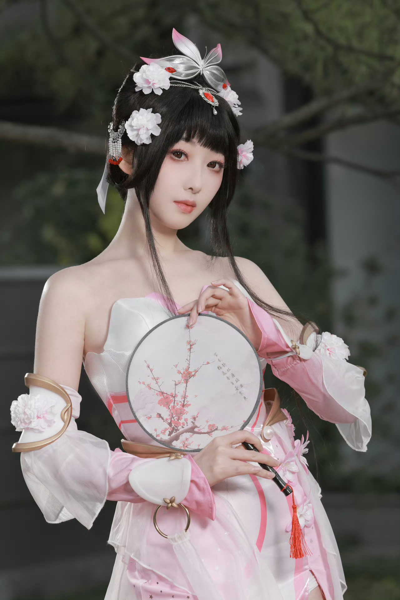 蒋梦婕又换风格了蒋梦婕新风格 蒋梦婕这波新造型好美!粉裙梅纹缀满古韵,团扇轻摇自带温婉buff~蒋梦婕古风造型cos甄姬