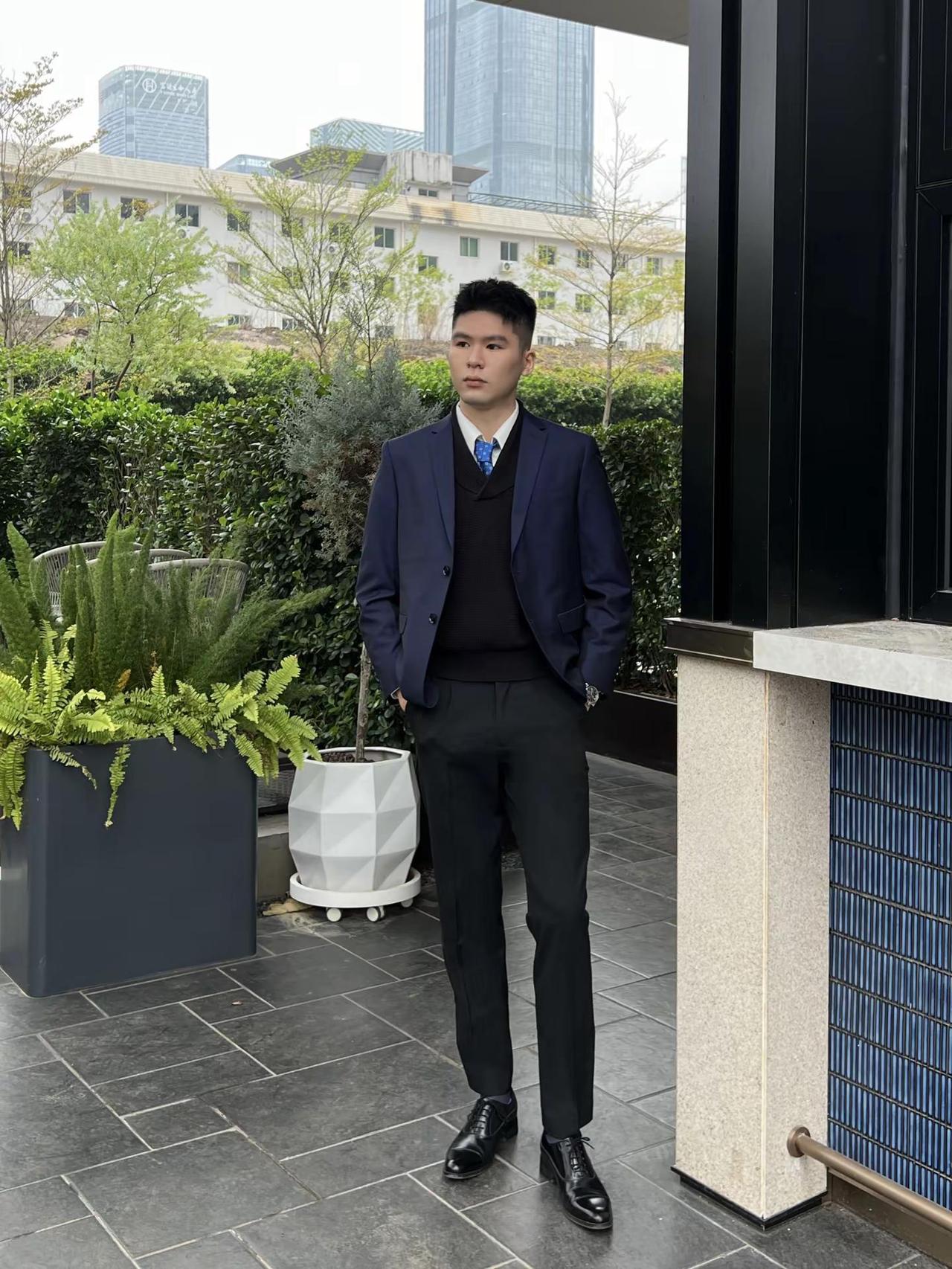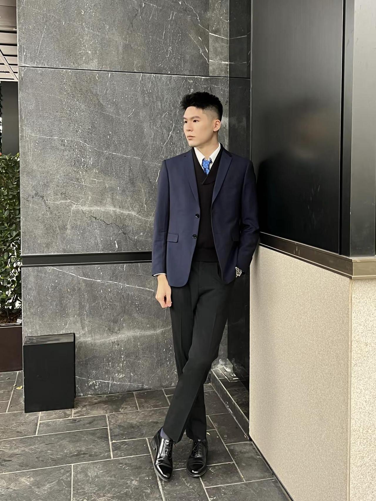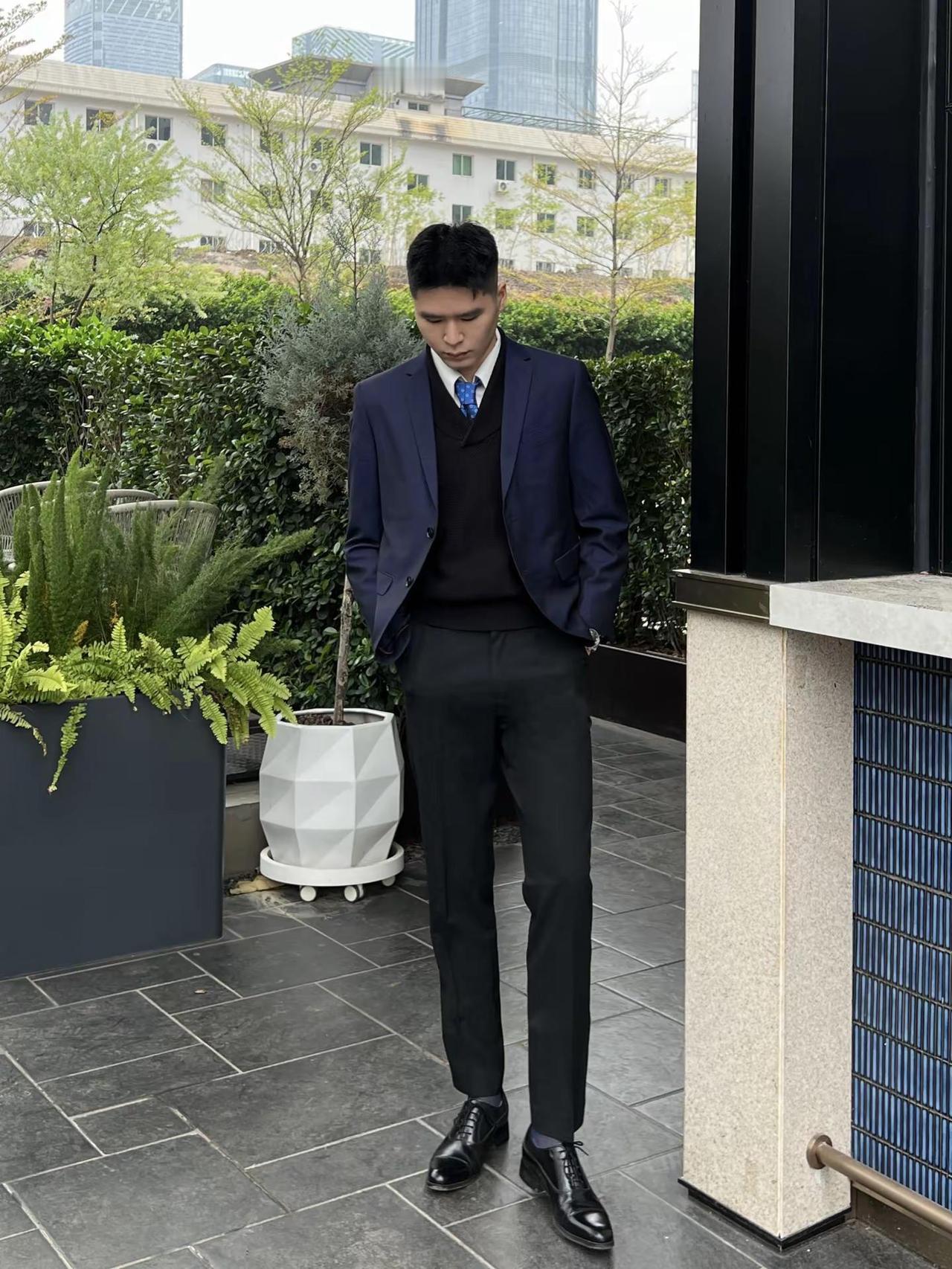 又是把正装皮鞋焊在身上的一天。藏青西装与黑西裤脚踩亮皮鞋把干净利落感拉满~正装不