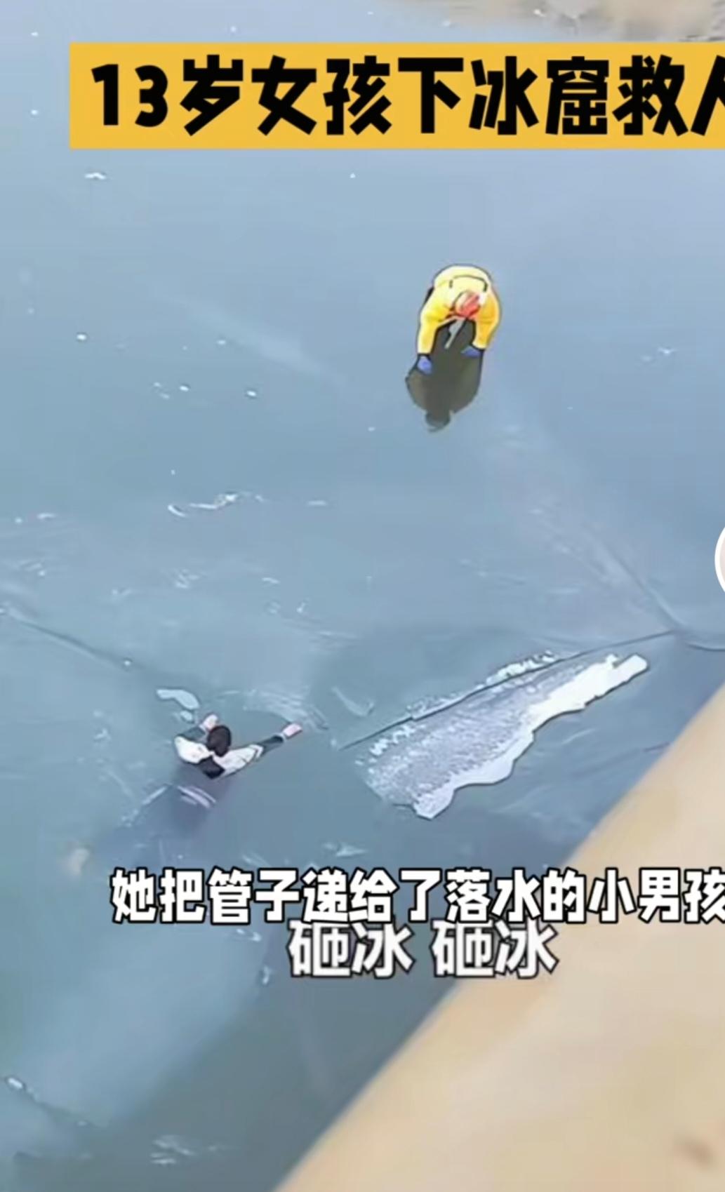 别说好听的,谁让13岁女孩涉险救人?没有任何安全保障下有可能双双毙命,如果消防员不能及时赶到,后果不堪设想,男童家长为什么不自己下去? 未成年保护法是不允许未成年人参与这样极其危险救援的,谁递塑料管子的,你出来走两步,你下去打个滚儿。 12月6日下午3点,宁夏同心县豫海湖的冰面上,4岁男童轩轩嬉戏时不慎坠入冰窟。刚放学骑车路过的李佳婷,见状立刻停车大喊“阿姨,我身体轻,我下去救”, 接过路人递来的管子,小心翼翼在冰面爬行靠近冰窟。她一边安抚哭闹的男童“小弟弟, 抓紧别松手”,一边奋力拖拽,却不料冰面突然塌陷,自己也坠入刺骨湖水中。即便浑身湿透、冻得打寒颤,李佳婷仍死攥管子不松手,直到岸边大人合力将她拉上岸?。随后消防员火速赶到,成功救出落水男童,而浑身湿漉漉的李佳婷已悄悄骑车离开。 李佳婷所在学校计划在12月8日升国旗时表彰她,当地教育局和消防队也将为其申报“见义勇为好少年”称号并予以表彰。