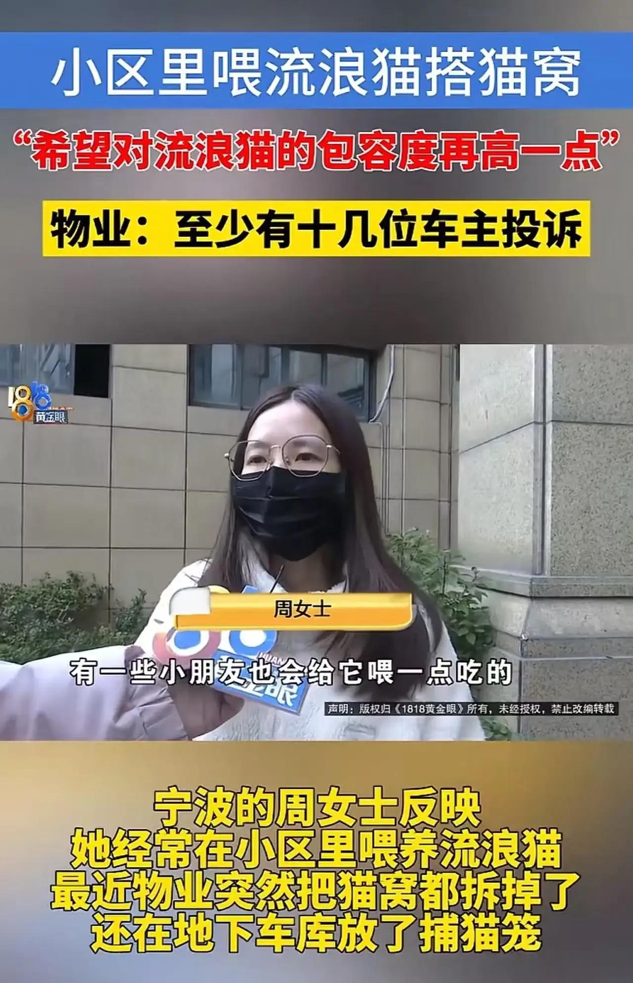 浙江宁波一女子在小区里喂养流浪猫,还贴心搭了猫窝,可没想到这一善举却引来了其他邻