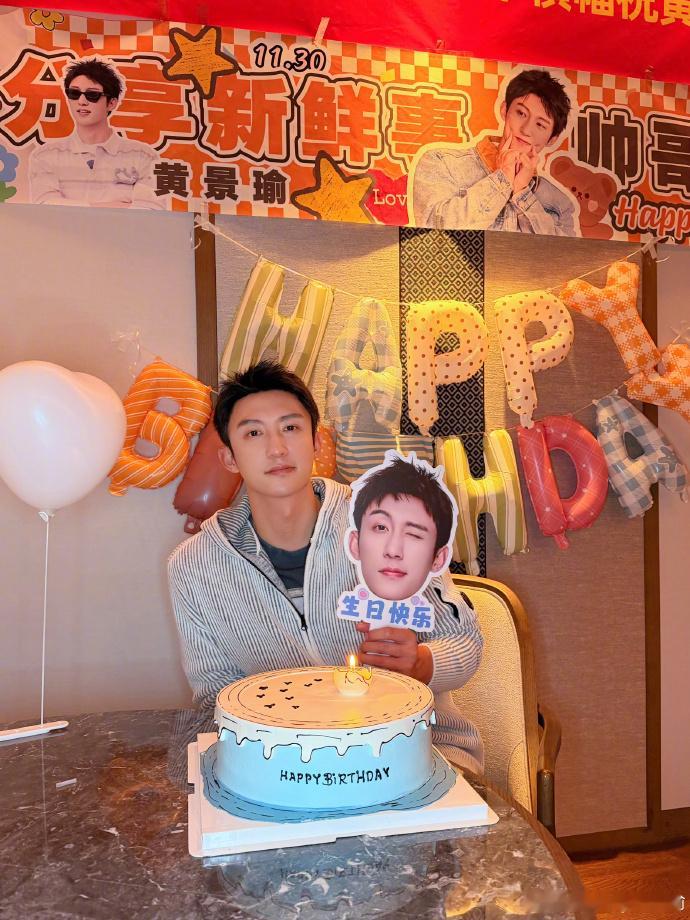 黄景瑜咋这么可爱 黄景瑜晒生日照,这个鲸鱼咋这么可爱呢,躲在蛋糕后面偷偷比耶,哥