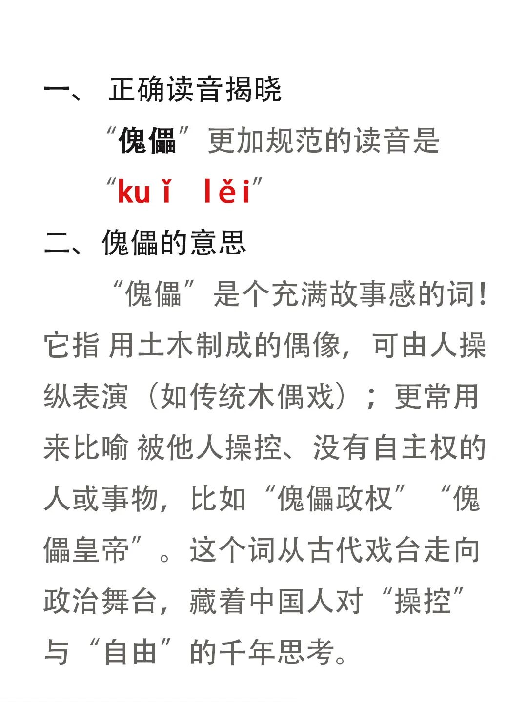 第一眼看到“傀儡”,感觉读“kuí lěi”。