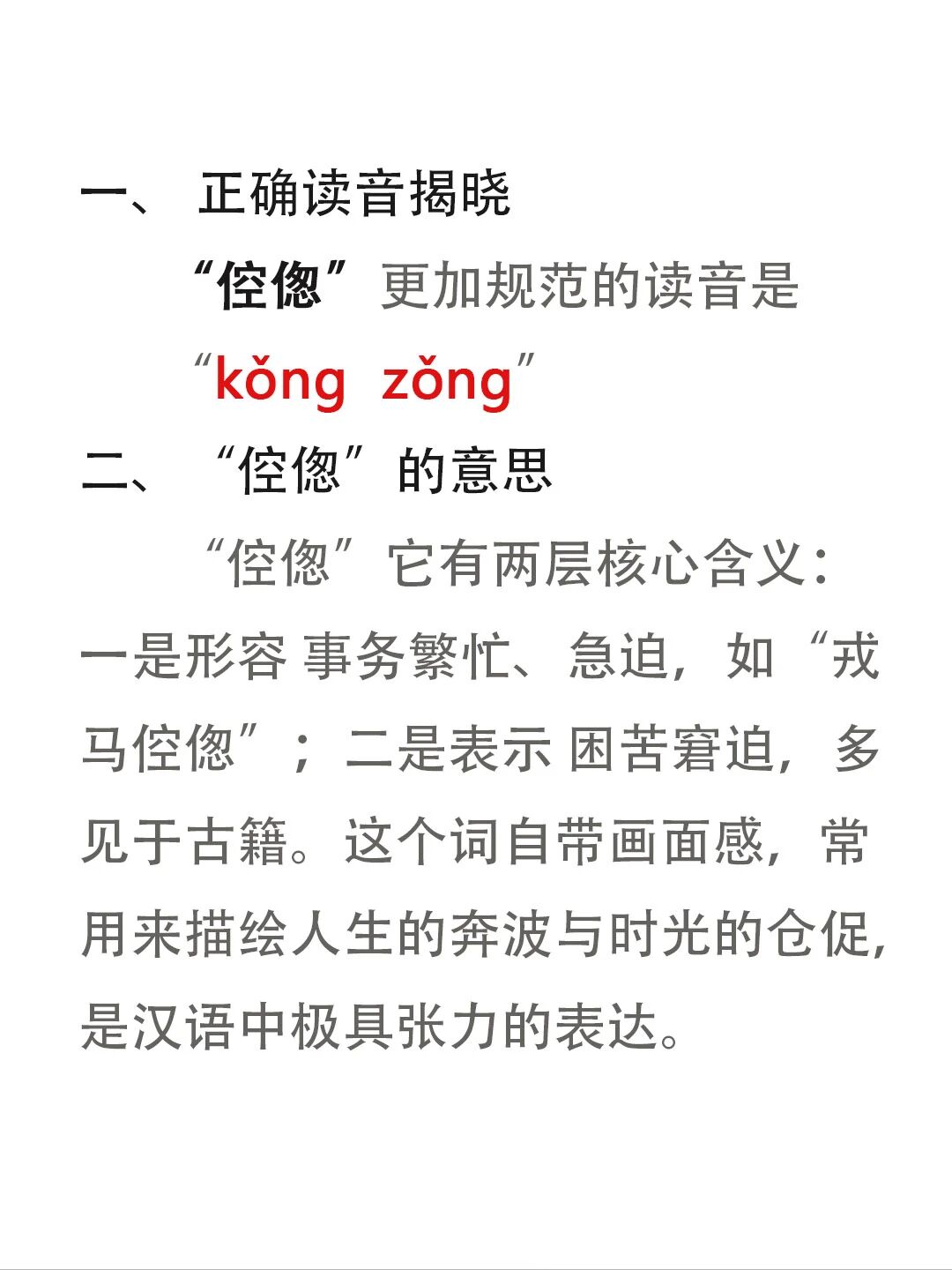 更加规范的读音应该是“kǒng zǒng”,你学到了吗?
