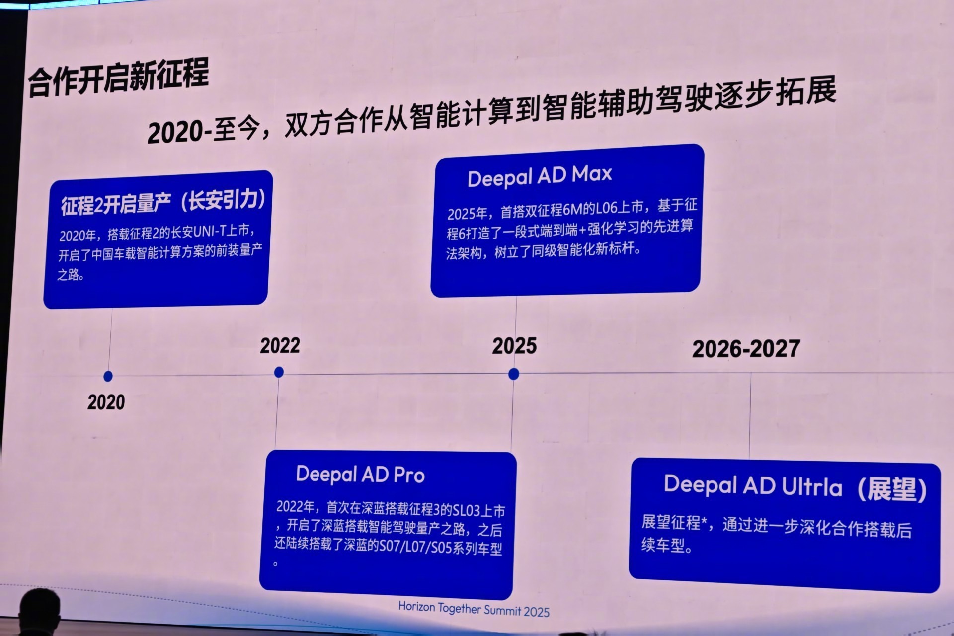 深蓝Deepal AD Ultrla 智能辅助驾驶系统将于2026-2027年上车深蓝DeepalADUltrla将于明后年上车2025地平线技术生态大会大v聊车